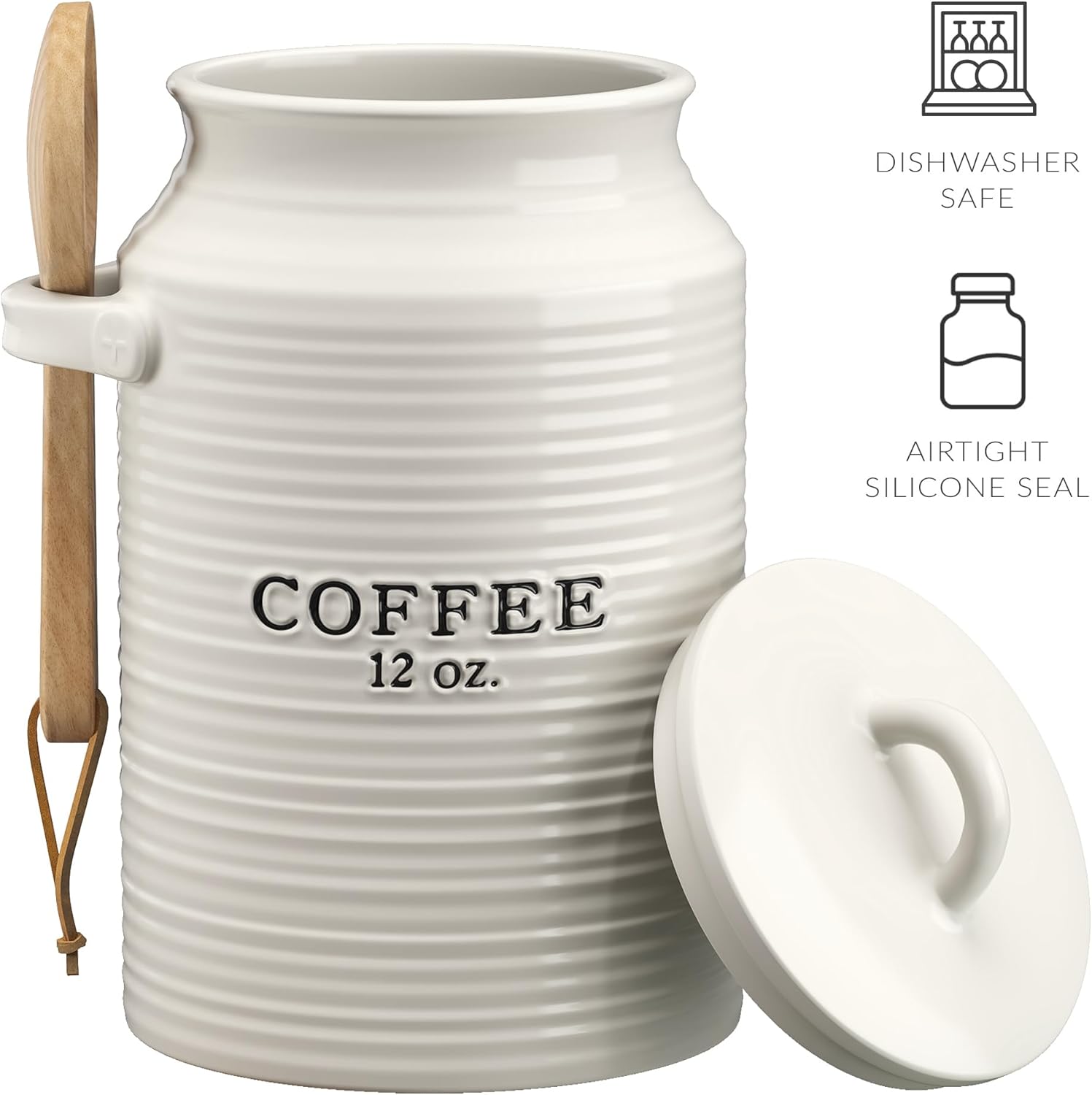 Barnyard Designs Coffee Canister for Kitchen Counter, Decorative Ceramic Coffee Container, Rustic Farmhouse Canister Jar, White (Coffee)
