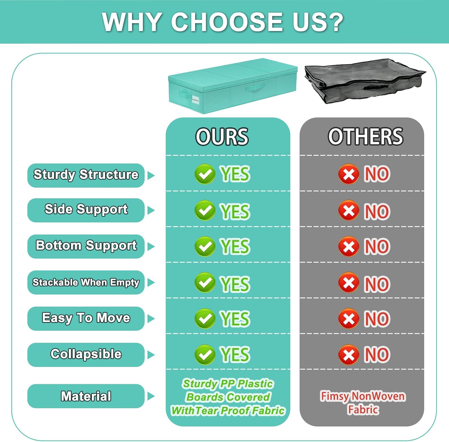- 👍STURDY STRUCTURE & STURDY HANDLES: 3 Reinforced sewn-in handles make it easy maneuverability and convenient for you to carry and pull out from under the bed; handy bins make excellent blanket organizers and storage; Lasts longer than underbed storage containers plastic; Keep your bedroom neat and tidy with storage bins with lids that fit your room's existing decor and theme