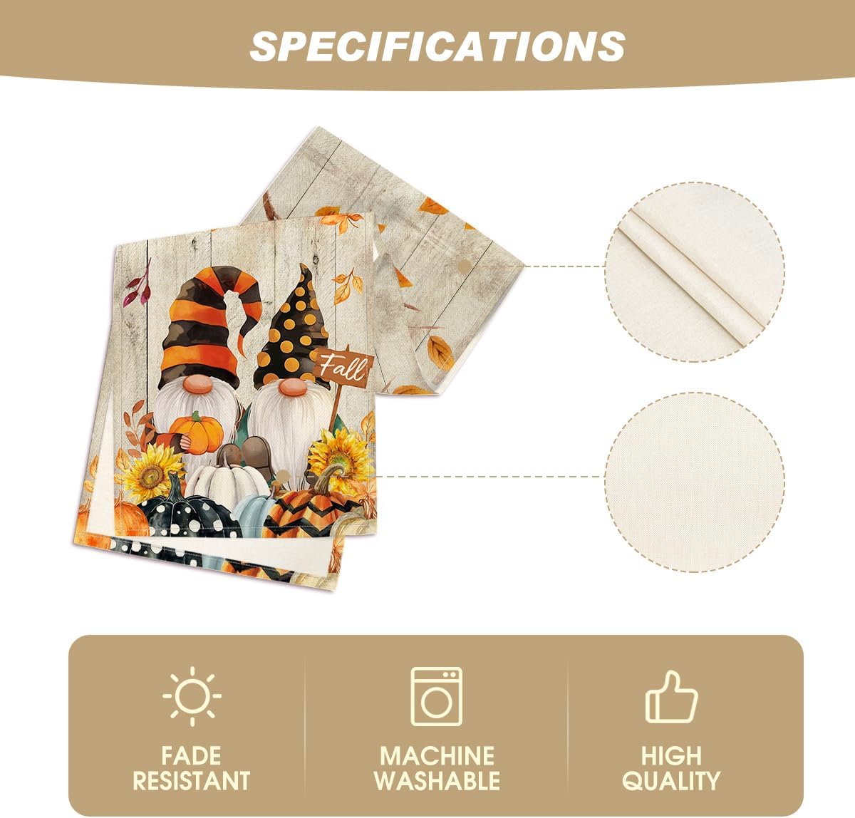 Artoid Mode Wood Gnomes Pumpkins Sunflower Maple Leaves Fall Table Runner, Kitchen Dining Table Decoration for Home Party Decor 13 x 48 Inch