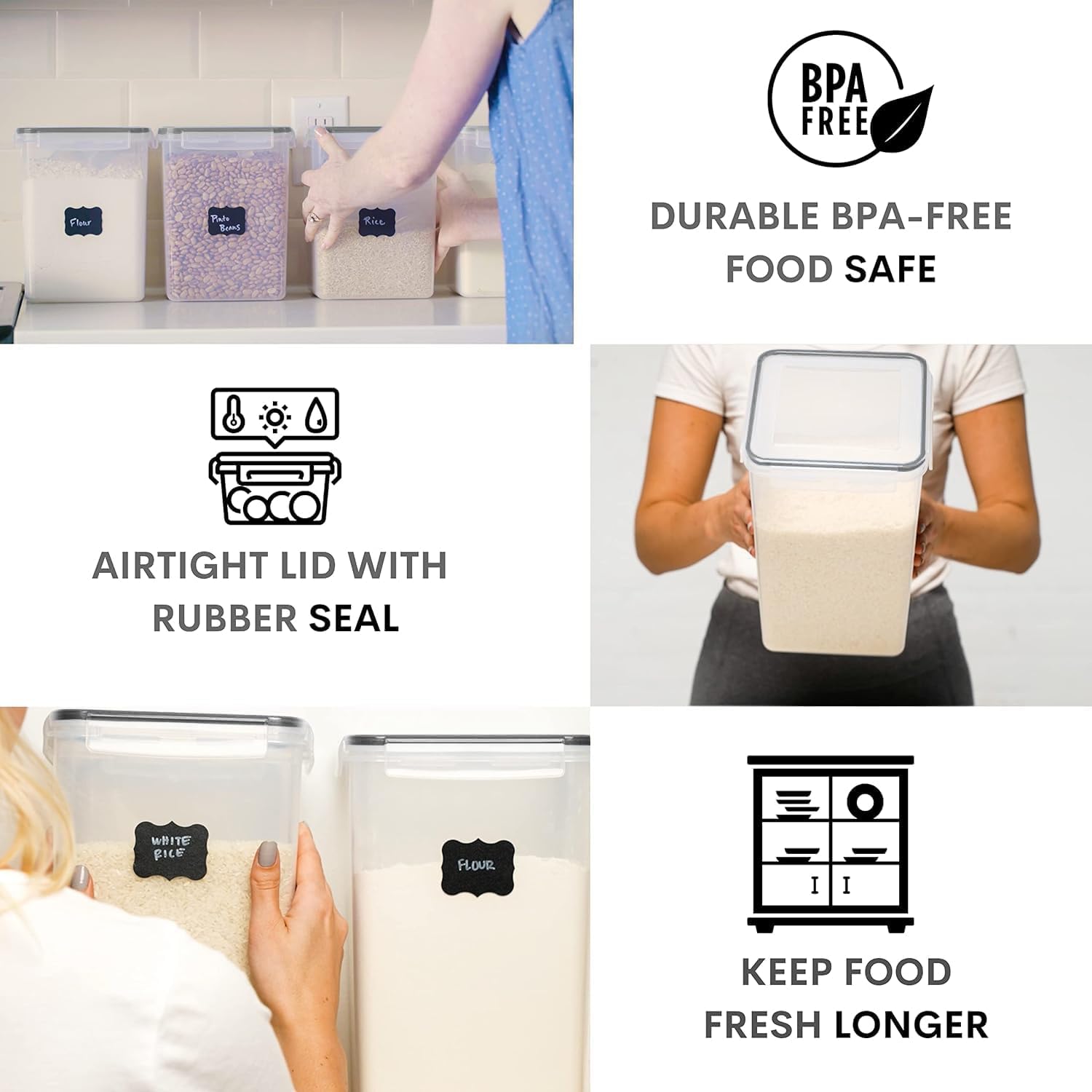 - ๐๐๐-๐ ๐ซ๐๐ ๐๐ฎ๐ฅ๐ค ๐๐ญ๐จ๐ซ๐๐ ๐: Our food storage containers with lids come in 2 extra-large (6.5 L / 220 oz - 11.1 x 7.2 x 7.2 inches) and 2 large (5.2 L / 175 oz - 8.9 x 7.2 x 7.2 inches) sizes, perfect for safely storing rice, pasta, and lentils. It also comes with 4 measuring cups for added convenience. These BPA-free food storage containers with lids keep essentials of kitchen storage containers fresh and neatly organized for longer use. Ideal as rice container and sugar container options.