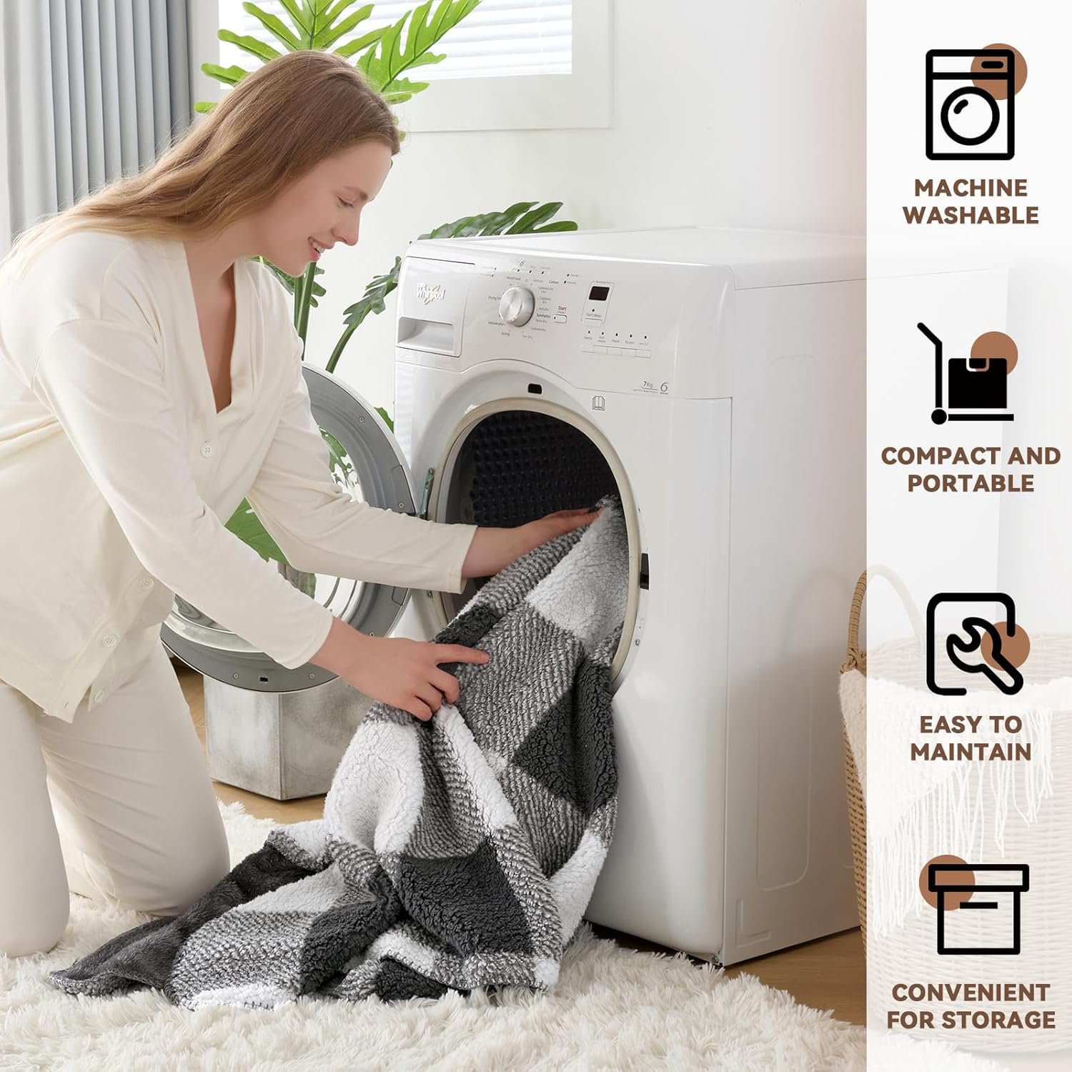 LURKA Checkered Sherpa Fleece Twin-Size Bed Blanket - Extra Thick and Warm Winter Soft Fuzzy Plush Blanket for Couches, Beds & Pets, Smoke Grey, 60x80 Inches