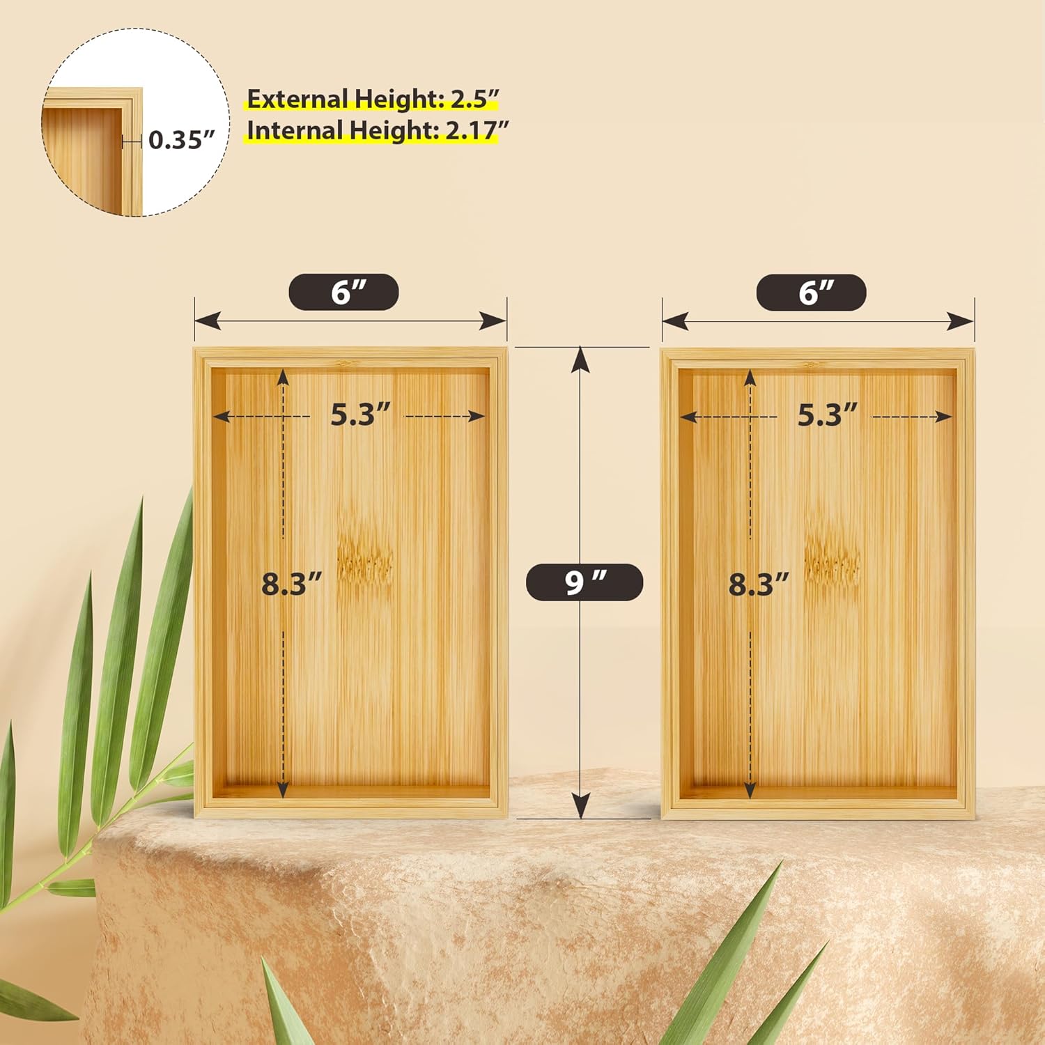 Kitchen Drawer Organizer Bins, Stackable Bamboo Drawer Organizer for Silverware, Flatware, Deep Office Desk Drawer Organizer Tray, Desktop Pen, Office Organization 9" x 6" x 2.5" (Set of 2)