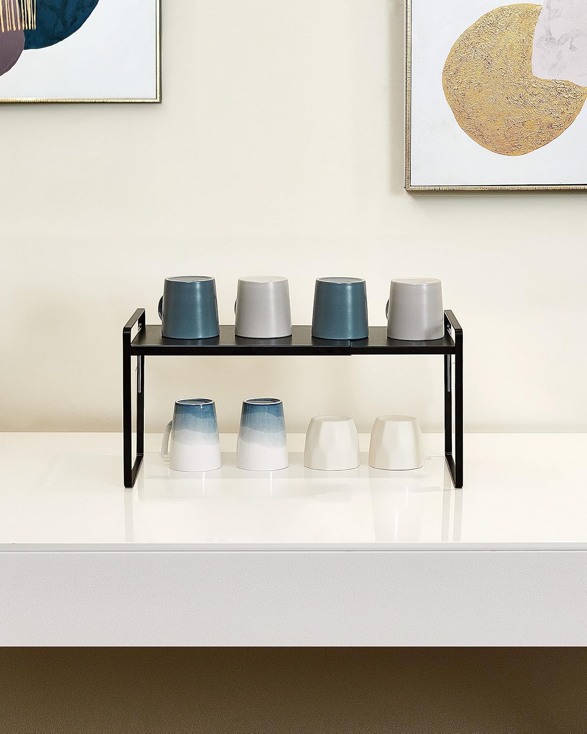 - MULTIFUNCTIONAL STORAGE: Using this cabinet shelf provides you with more storage space and allows for organizing various items such as bowls, cups, plates, dishes, snacks, books, magazines, spices and more. With this cabinet organizer, you can better organize your items and easily access the items you need.