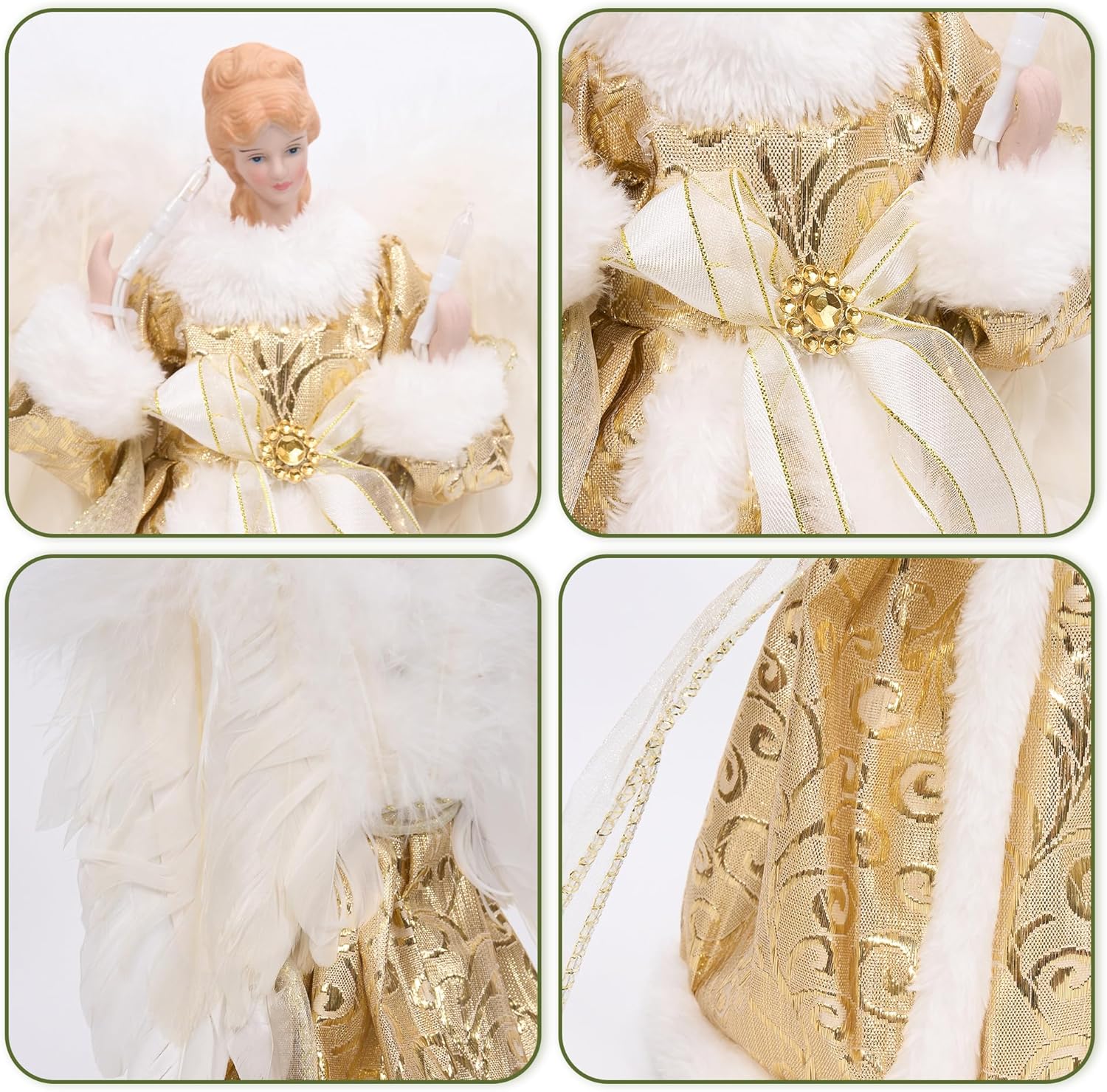 - 🎄【The perfect Christmas Gift accessory】:The angel treetop is the crowning glory of your Christmas tree, but it doesn't have to stand alone. It greatly complements our extensive range of other theme products,stockings, christmas balls, chriatmas tree skirts,wreaths, garlands. Whether you're aiming for a traditional, modern, or eclectic style, we have everything you need to make your Christmas decorations truly stand out.
