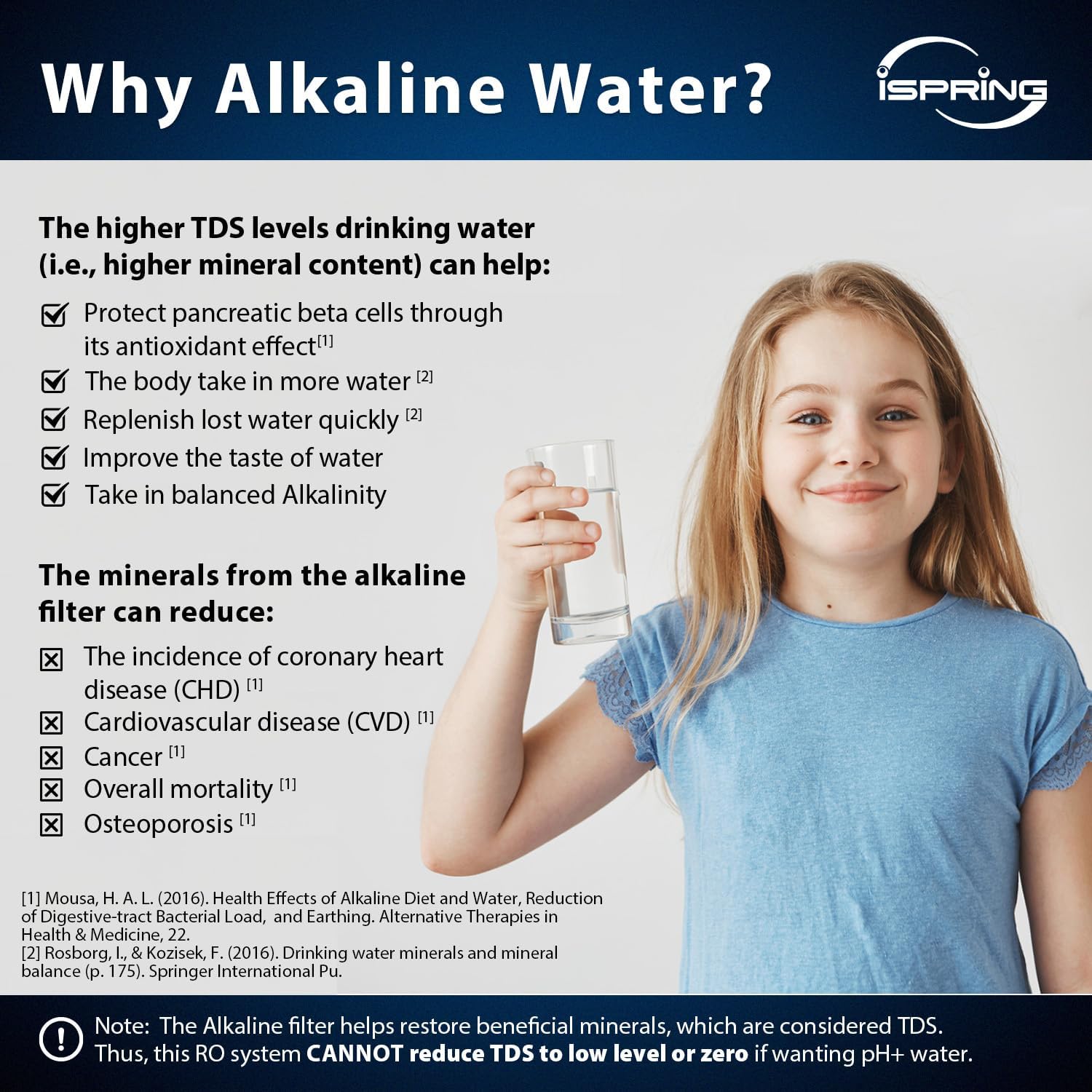 - [Alkaline Filtration] - This advanced 7-stage alkaline remineralization water filter has been exclusively designed to restore the natural alkalinity and mineral balance of water, providing a more natural taste than standard 5-stage RO system.