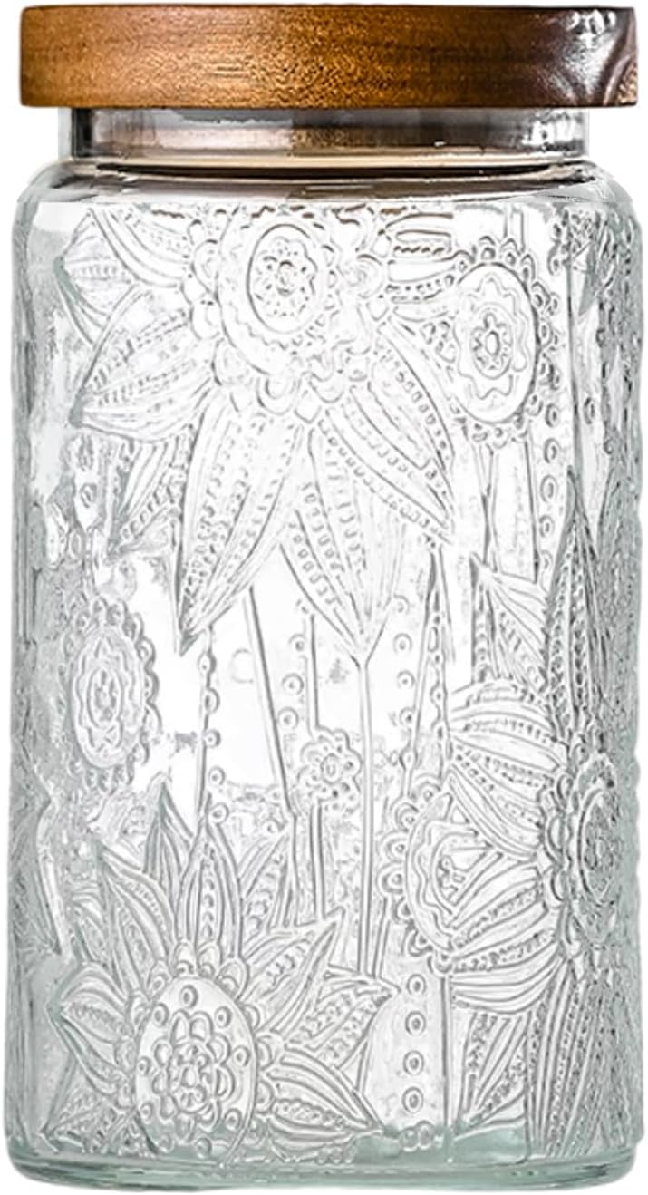 32oz Vintage Glass Jar With Lid, Glass Storage Containers, Airtight Kitchen Storage Containers For Sugar, Coffee, Tea, Spice, Flour, Candy Cookie, Pasta, Cereal, Cute Decorative Jars