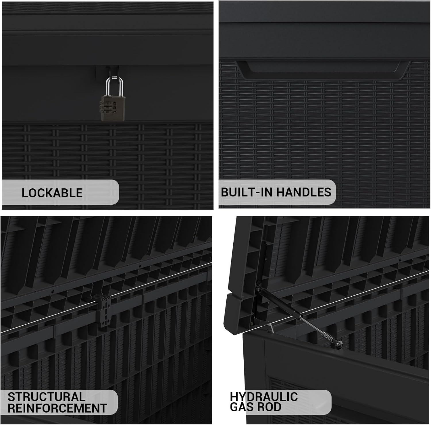 - Secure & Smooth Lid Operation:Features three reinforced crossbars and hydraulic support, ensuring a secure lid that won’t warp, even in high winds. Effortless opening and closing with smooth, controlled motion.