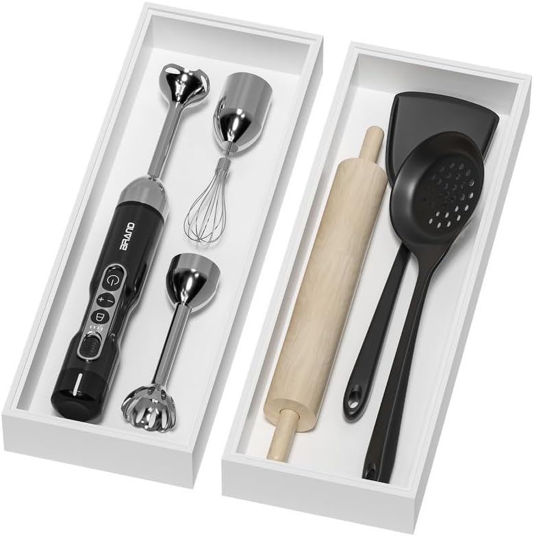 - Premium Bamboo Kitchen Drawer Organizer: Both 2 kitchen utensil organizer is made of sleek durable natural bamboo that is known to be stronger and beautiful than regular wood and to ensure durability and stability. Must have kitchen drawer organizer to organize silverware, utensil, cutlery and flatware like spoon. Or used on kitchen countertop to storage spice jars, sauces, bottles, etc.