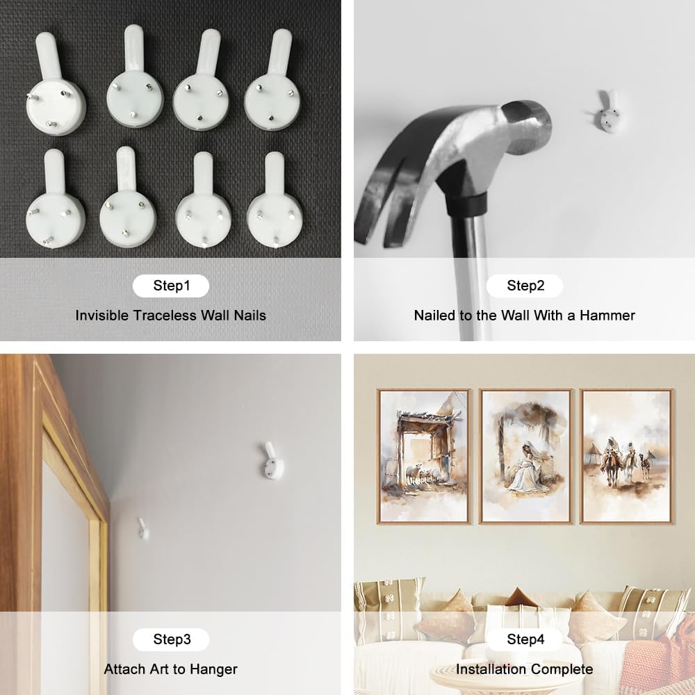 - 【Easy To Hang】The Easter Jesus framed picture set is easy to hang, ready to hang, it is finished with metal hooks and non-trace nails. It will only take about 5 minutes for you to hang it up.