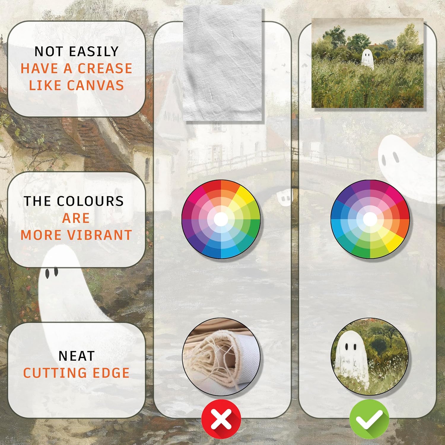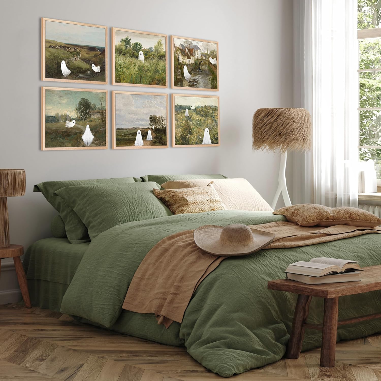 - Ghost Decor: Explore our captivating "Ghost Wall Art" collection of 6 Pcs 8x10-inch. These eerily stunning works of art embrace the aesthetics of dark academia, lending an air of mystery and elegance to your space.