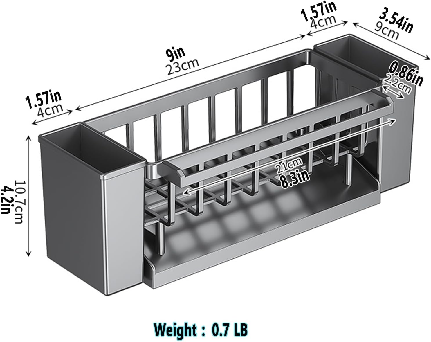 - Perfect Self-Draining Tray Design:This kitchen sink caddy features a self draining tray design that quickly drains water into the sink, helping your cleaning tools dry faster and stay clean.