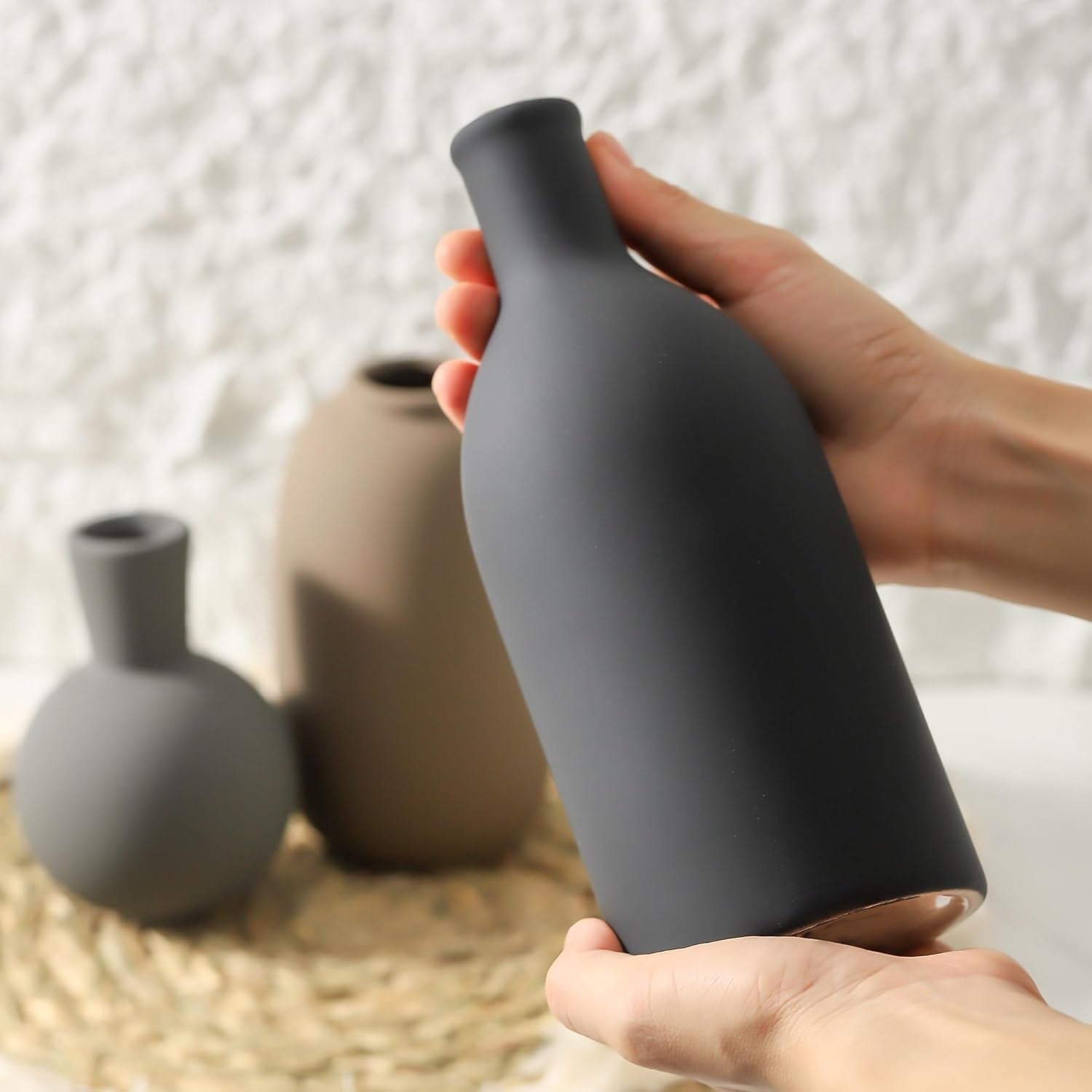 - 【Home Décor Ceramic Vases】More than vases, they are wonderful home decor. This set of ceramic vases is perfect for artificial flowers or fresh flowers and plants, can be placed individually or in combination, as a neutral home decor, living room decoration, bedroom decor,tabletop decoration, bookshelf decoration, storage rack decoration, mantelpiece decoration, entryway decor,dining room decor, minimalist side table decor,etc.