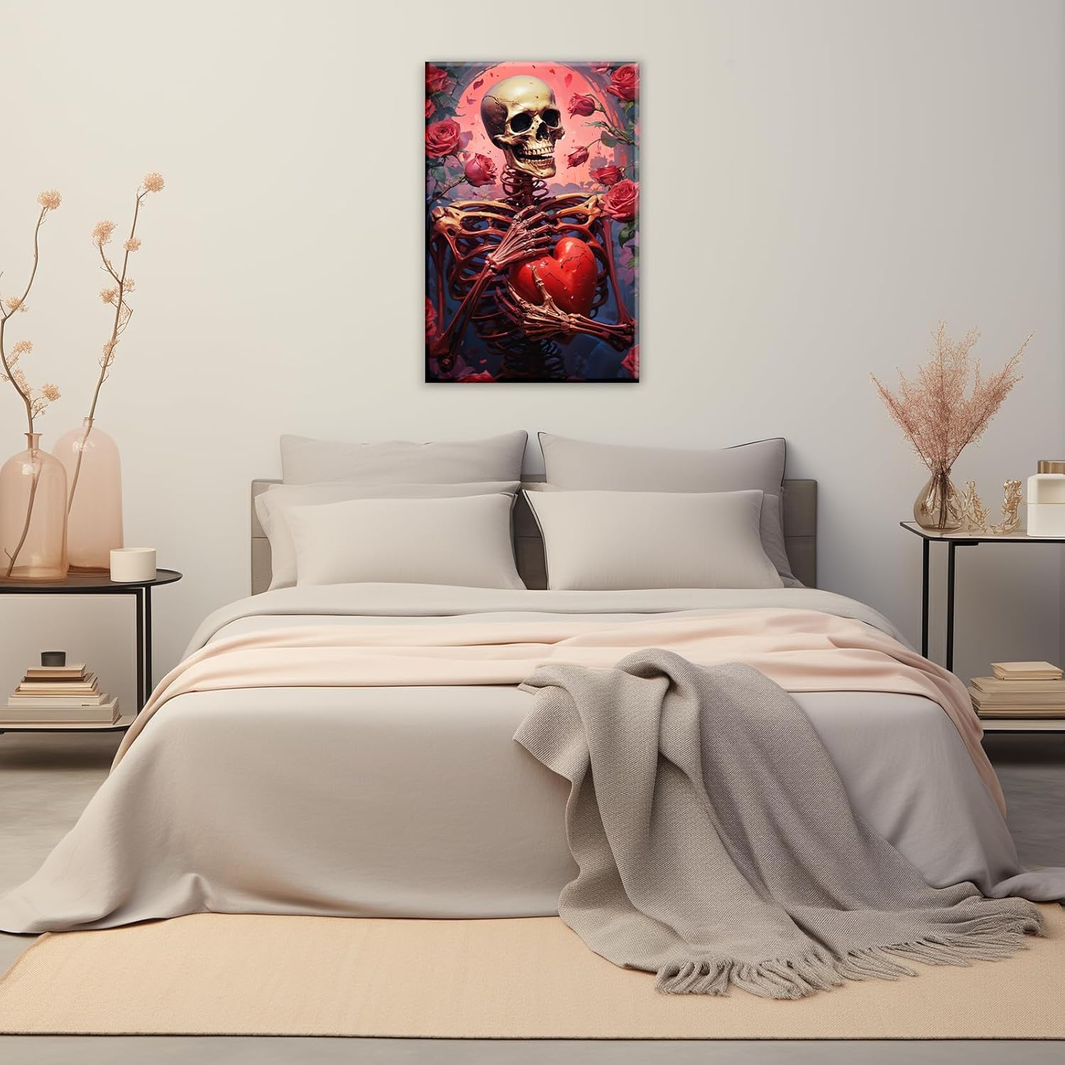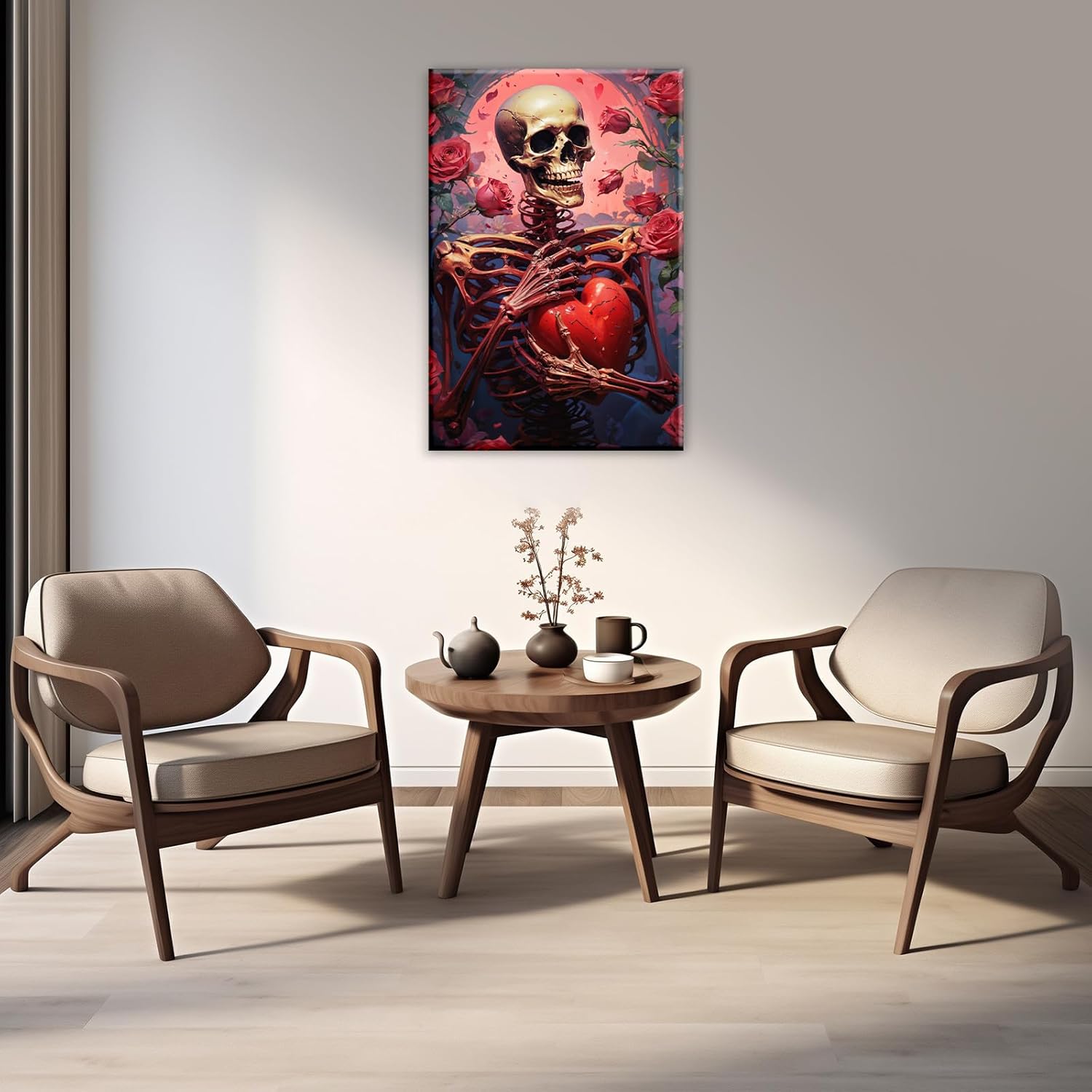 OAAPITI Skull Skeleton Canvas Wall Art Skull Holding Heart Picture Print Romantic Theme Painting Artwork Gothic Poster Wall Decor Living Room Halloween Decor(Artwork-1,24"x36")