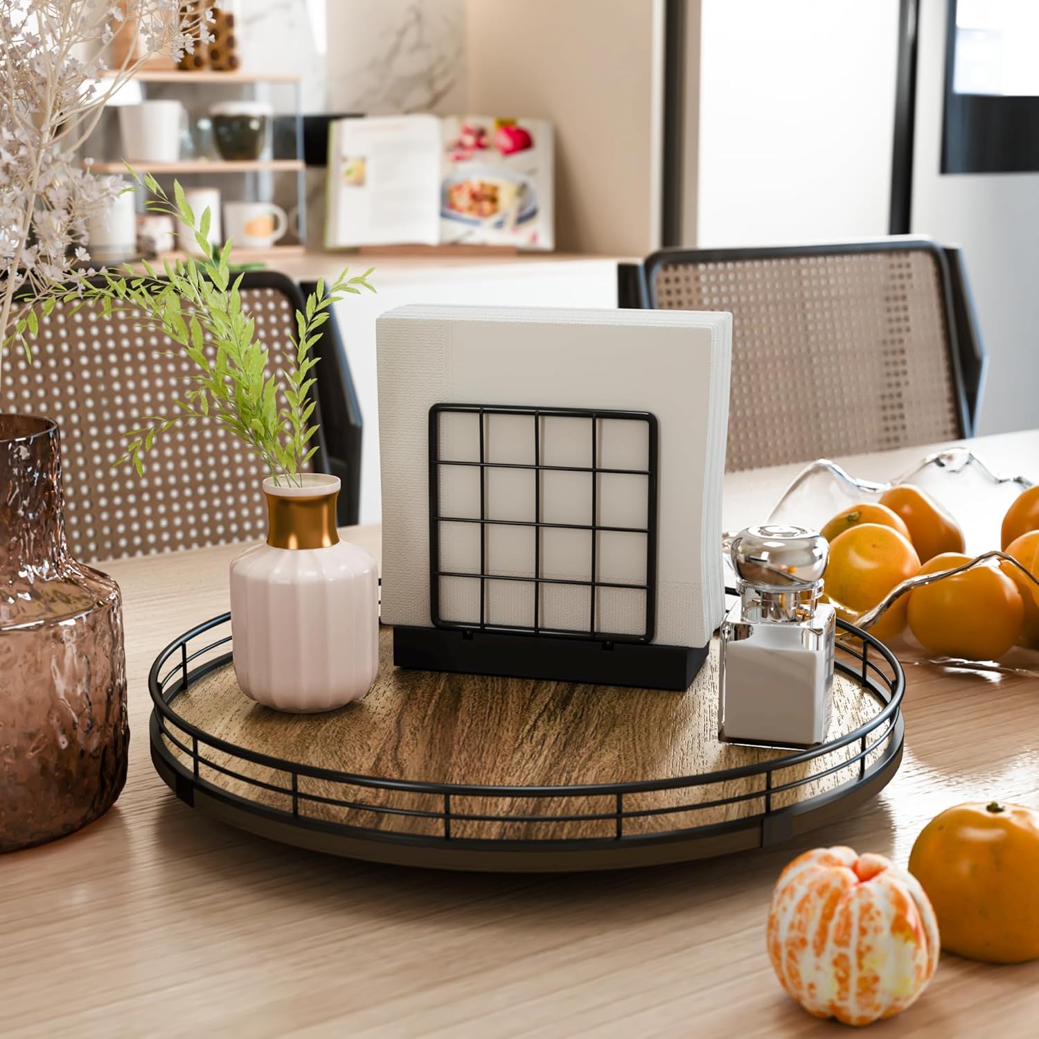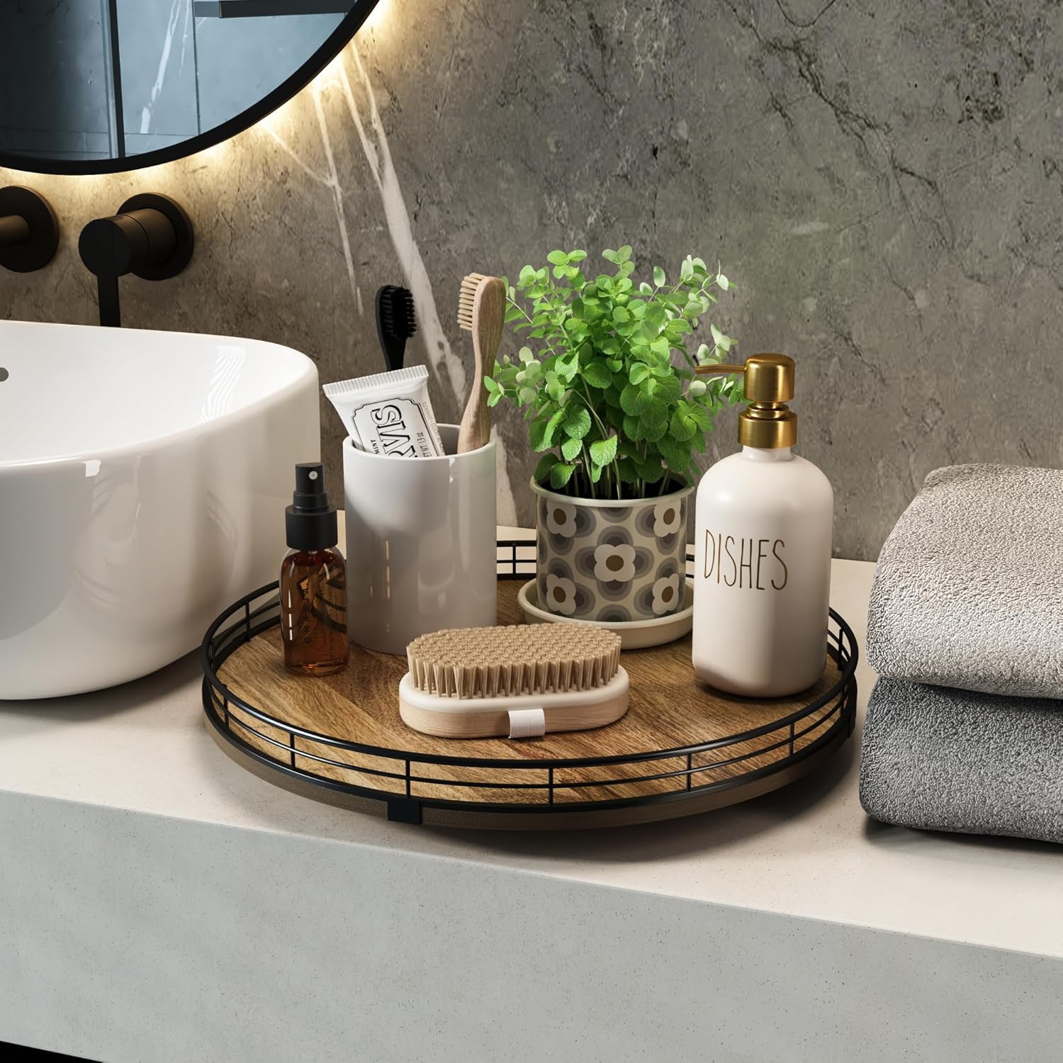 - Exquisite Texture- A turntable to meet your many home needs. Place it in your cabinet to easily store and access food, condiments, cans, medicines and more. As a coffee table tray, perfect for displaying napkin holders, vases, candles. Use it as a bathroom vanity tray to store lotions, perfumes, cosmetics, keep your life organized!
