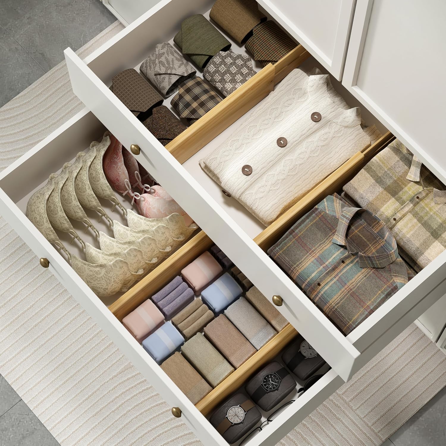 - Expandable design: Each deep drawer divider is 4" H, 0.6"W, and 12.2" to 17.01"L, which can be adjusted according to the size of the drawer, adapting to different furniture needs