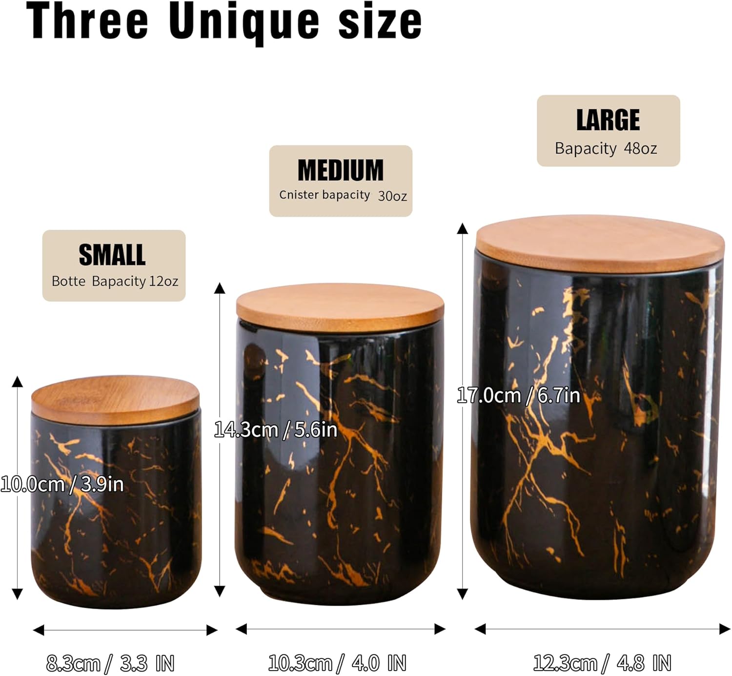 Black Ceramic Canister Set with Wooden Lid, 3-Piece Food Storage Jars for Kitchen Counter, Storage Container for Sugar, Coffee, Tea, Spice