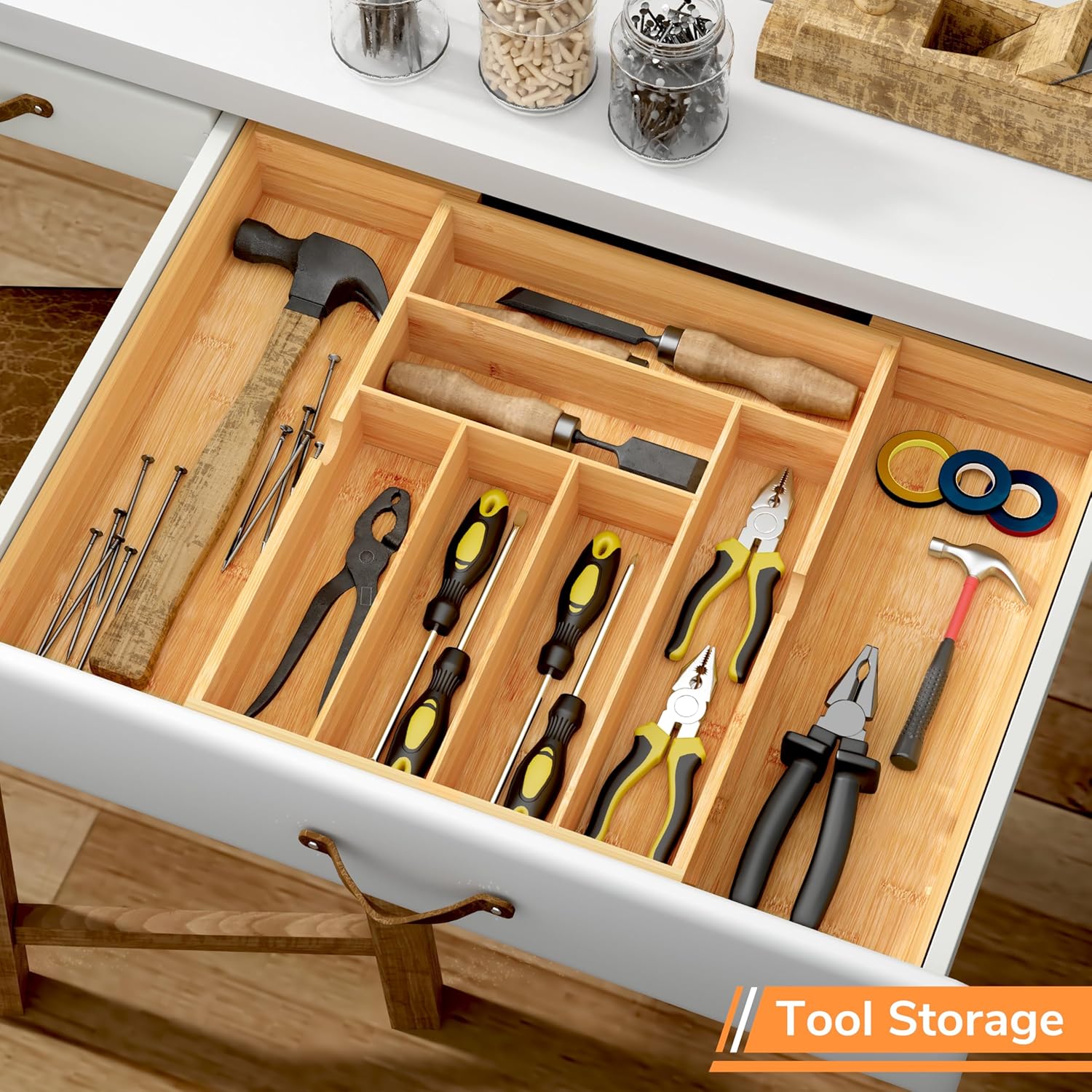 - Not Just for Drawer Storage: The silverware drawer organizer is versatile, not only does it excel in drawer organization, but it is also the perfect solution for desktop organization, making it easy to find and adding to the beauty of your desktop at the same time