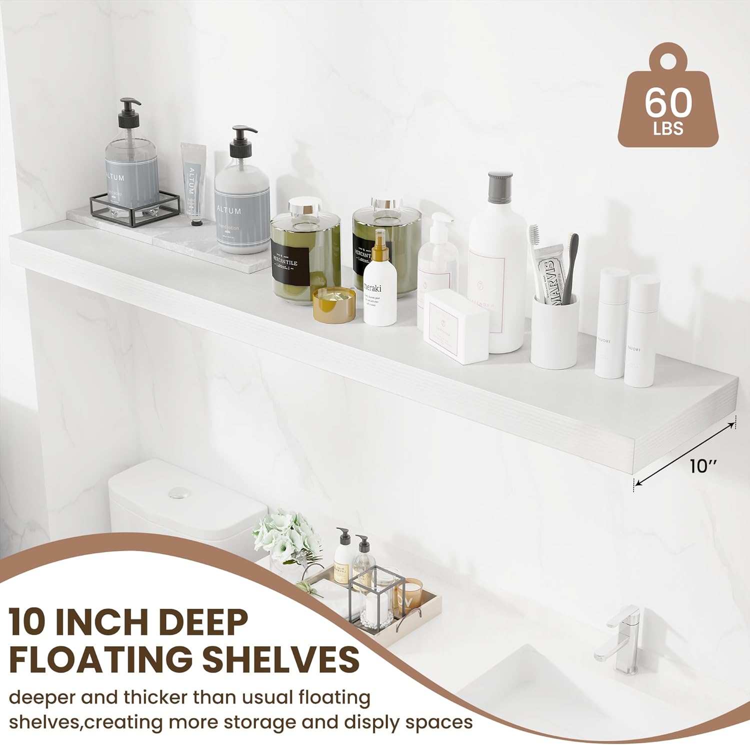 - 10 INCH DEEP: This wall shelf has a 10-inch depth and offers plenty of space to store books, pictures, models, or small plants. Its extra-deep design ensures that your items are displayed neatly while maintaining a clean, organized aesthetic