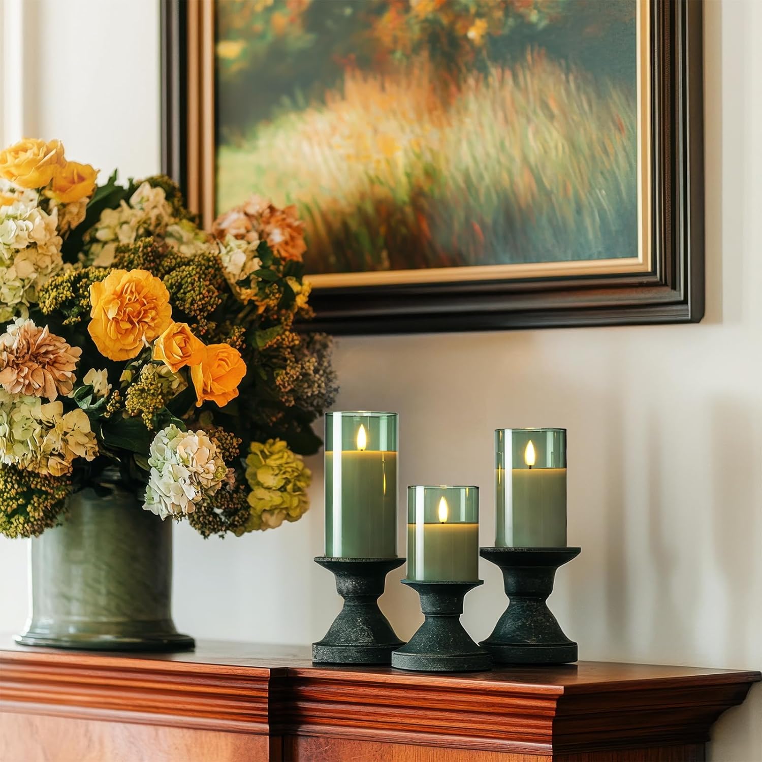 - Safety First: The glass battery candles are made of non-toxic unscented real wax and glass. Just enjoy the texture of real candles with no real fire flame, never worry about fire-related accidents, safe for kids and pets