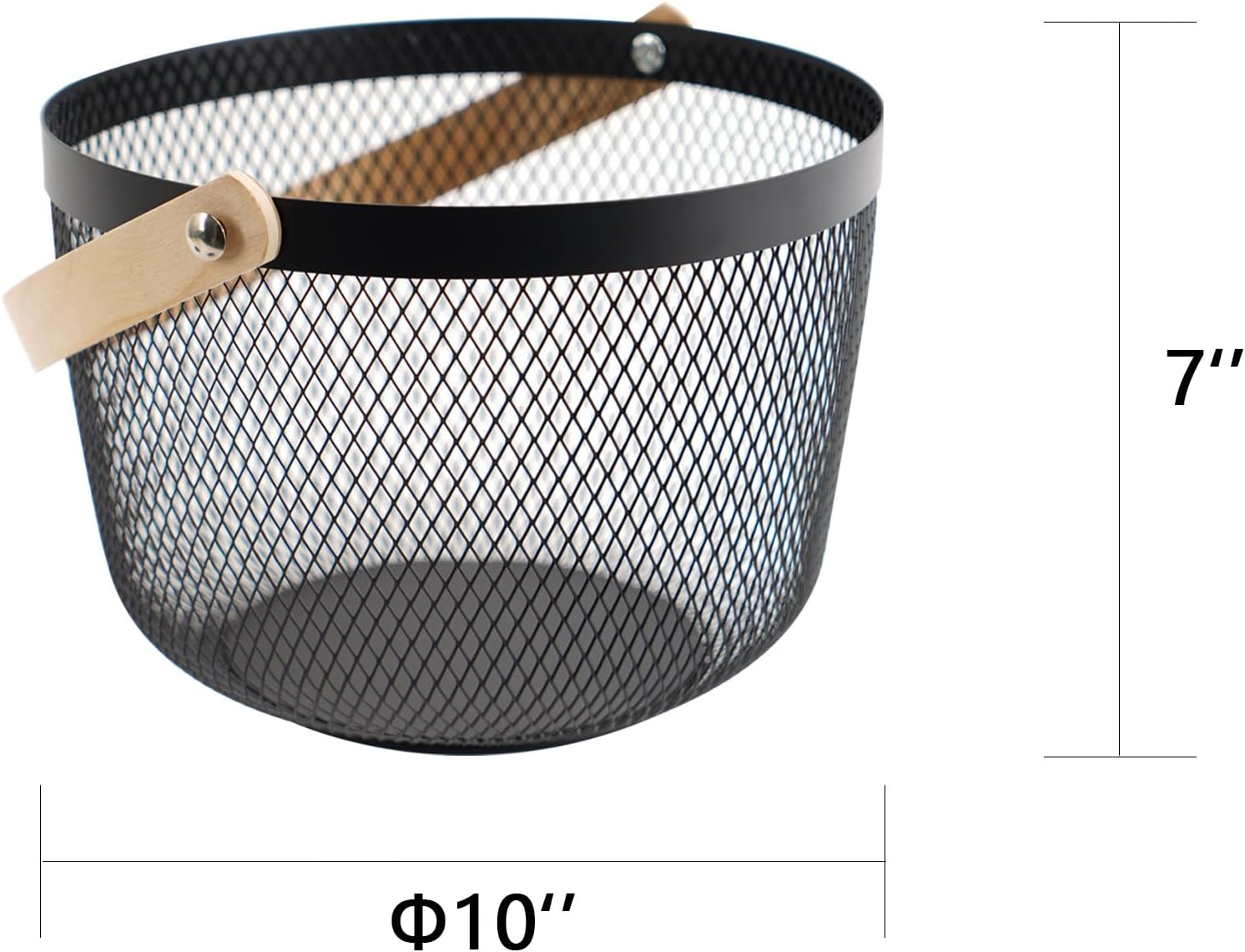 - 🧺Size & Material: You will get a metal mesh basket. Each round wire basket measures approximately 10 x 10 x 7 inches (L x W x H) with a handle height of 4.92 inches. The overall weight of the garden harvest basket is very light, only 1 pound. The basket consists of metal and wood.