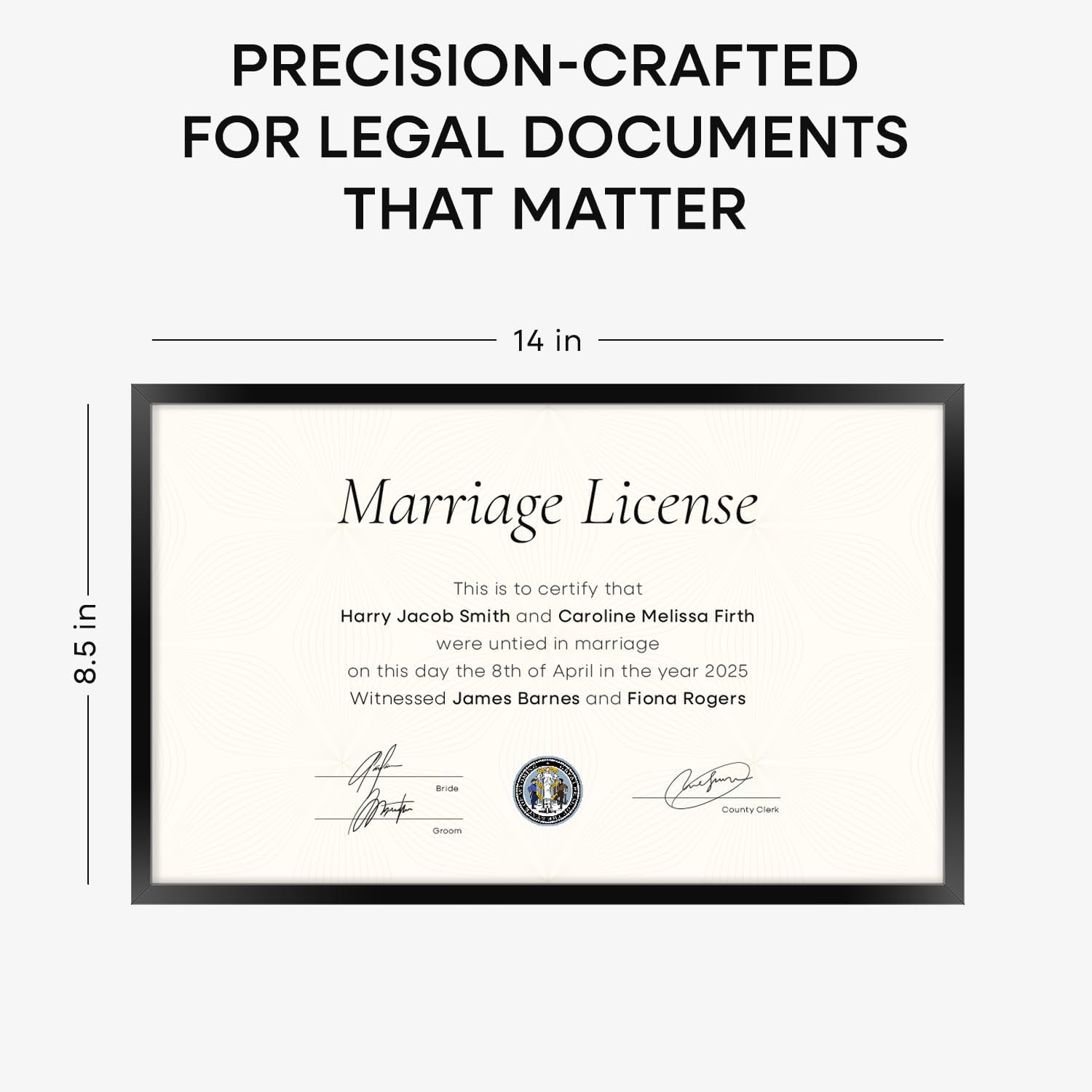 Homeforia 8.5 x 14 Marriage License Frame Black, High End Metal 8.5x14 Marriage Certificate Frames, 14x8.5 Picture Frame for Wall & Tabletop, 8.5 by 14 Photo Frames, Tempered Glass, Wall Kit, Set of 1