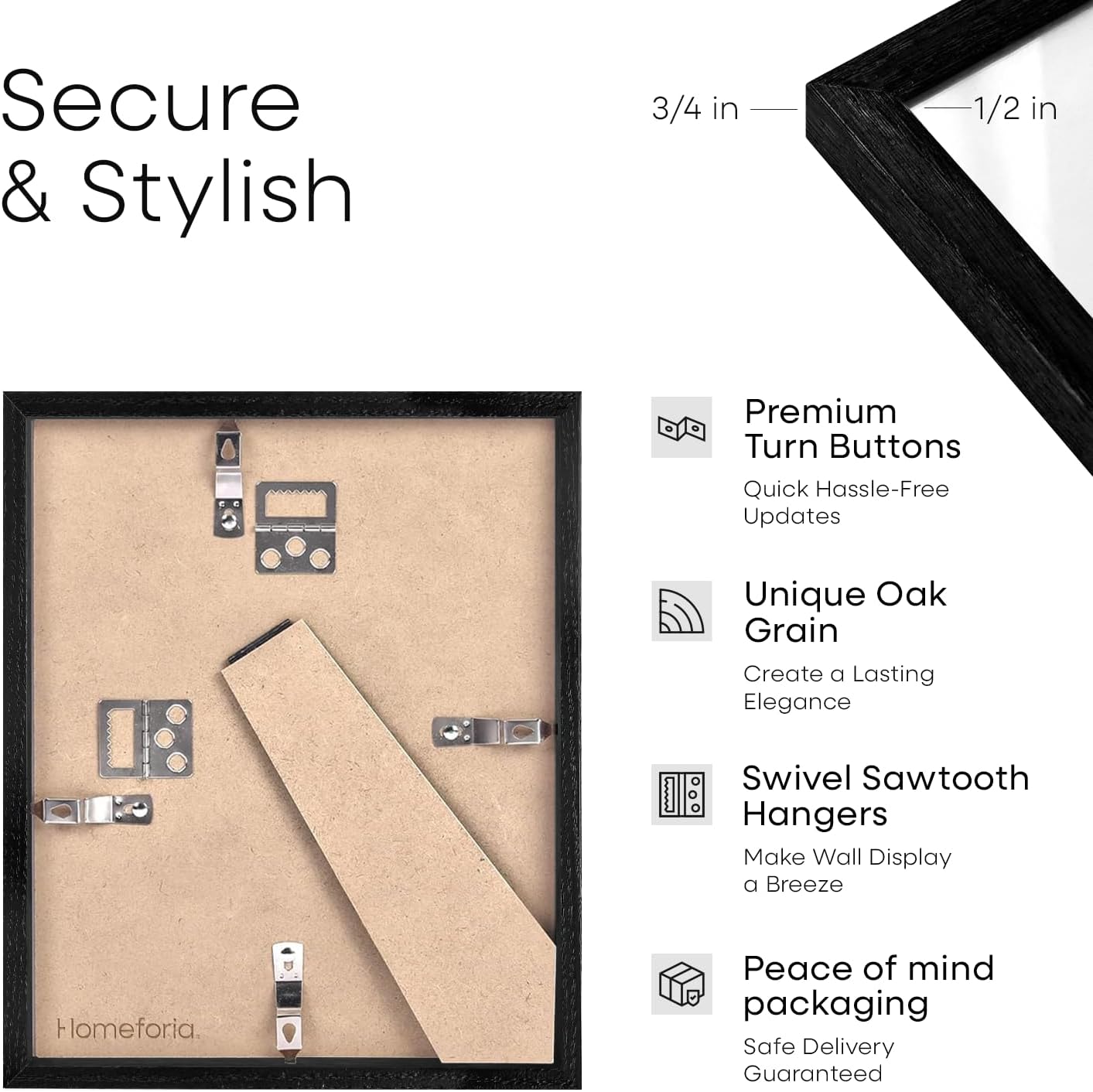 Homeforia 5.5x8.5 Business License Frame Black, High End Oak 5.5 by 8.5 Wood Certificate Frame, 8.5 x 5.5 Document Frame for Wall or Tabletop, Wooden Picture Frames, Tempered Glass, Wall Kit, Set of 1