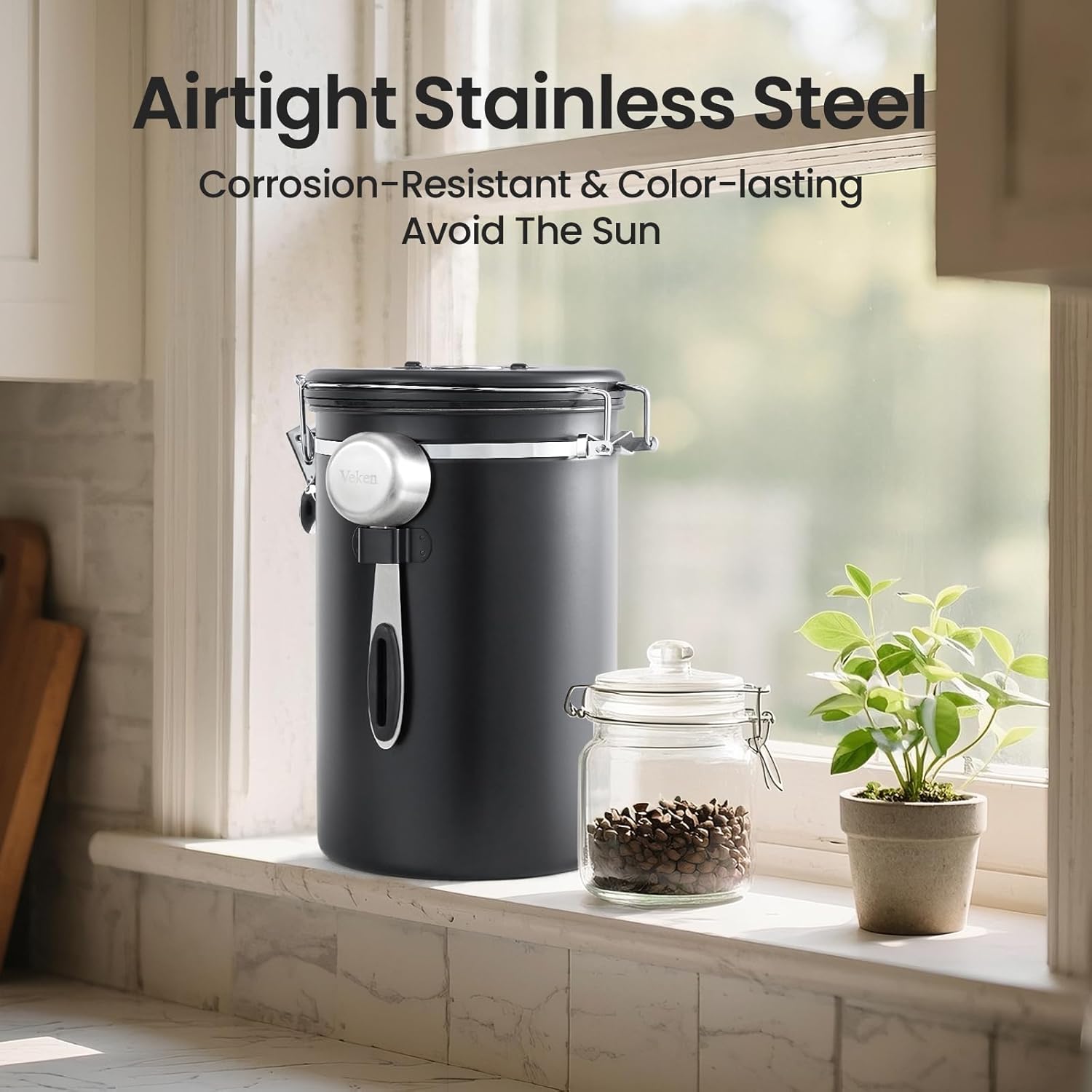 - 【Reason to Choose Veken】Crafted from durable 304 stainless steel, Veken coffee canisters put forth our strength to preserve more freshness of each coffee bean. Every detail is designed with your coffee experience in mind. Choose Veken for reliable, elegant coffee storage that enhances your daily coffee experience.