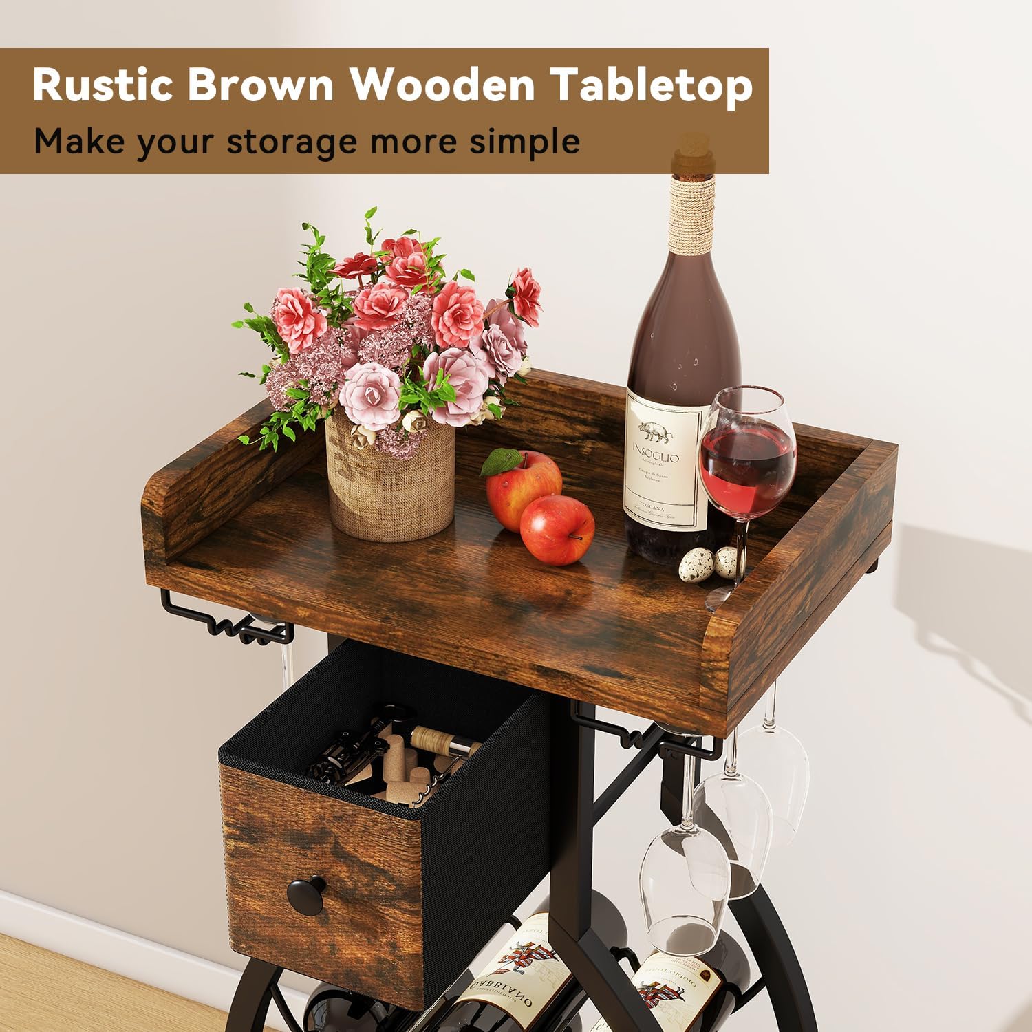 - Sturdy & Durable: The wine holder rack is made of particle board and metal frame, ensuring stability and durability of the rack as well as excellent weight bearing capacity. The wood tabletop placement is perfect for bouquets and wine accessories.