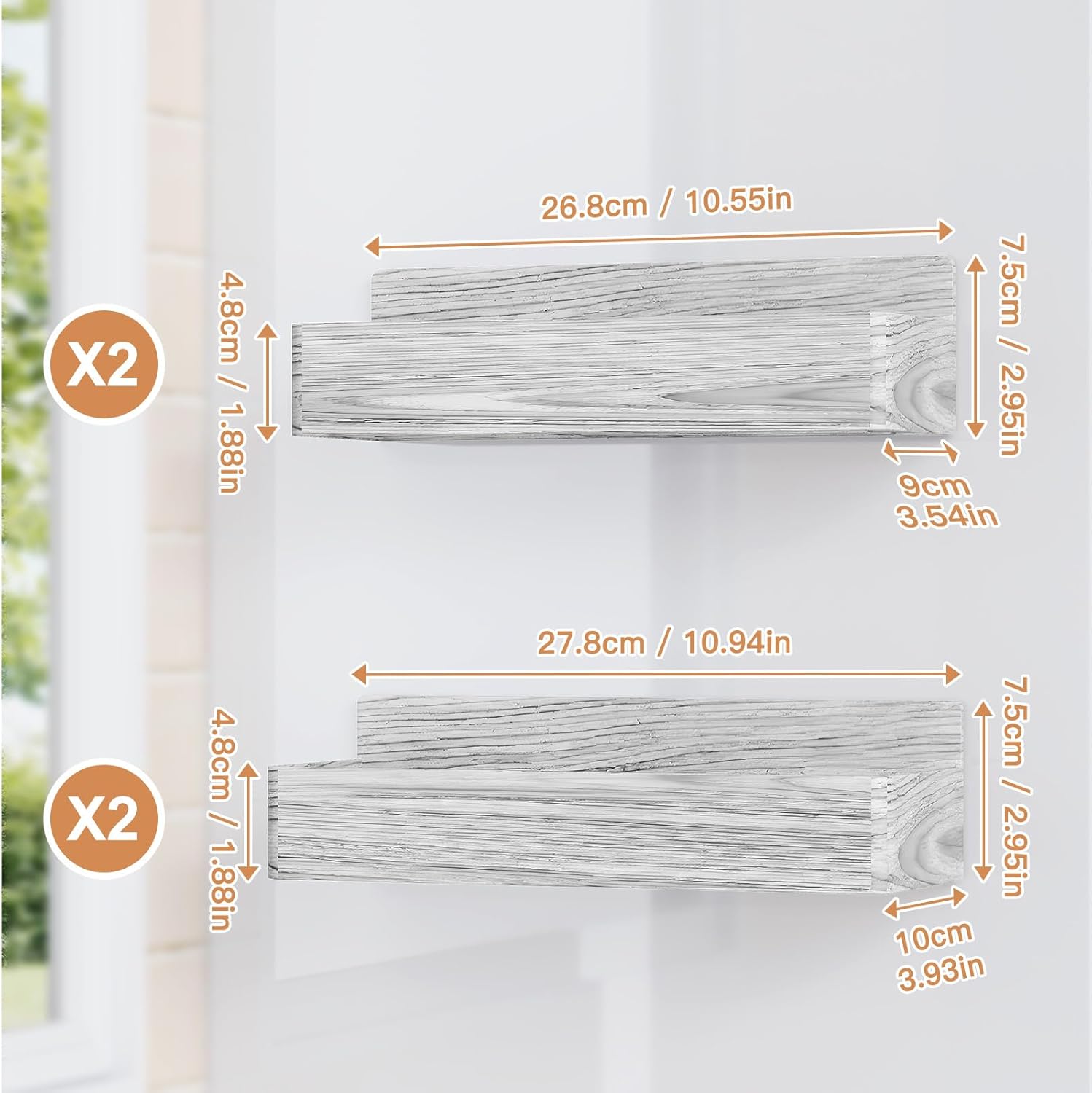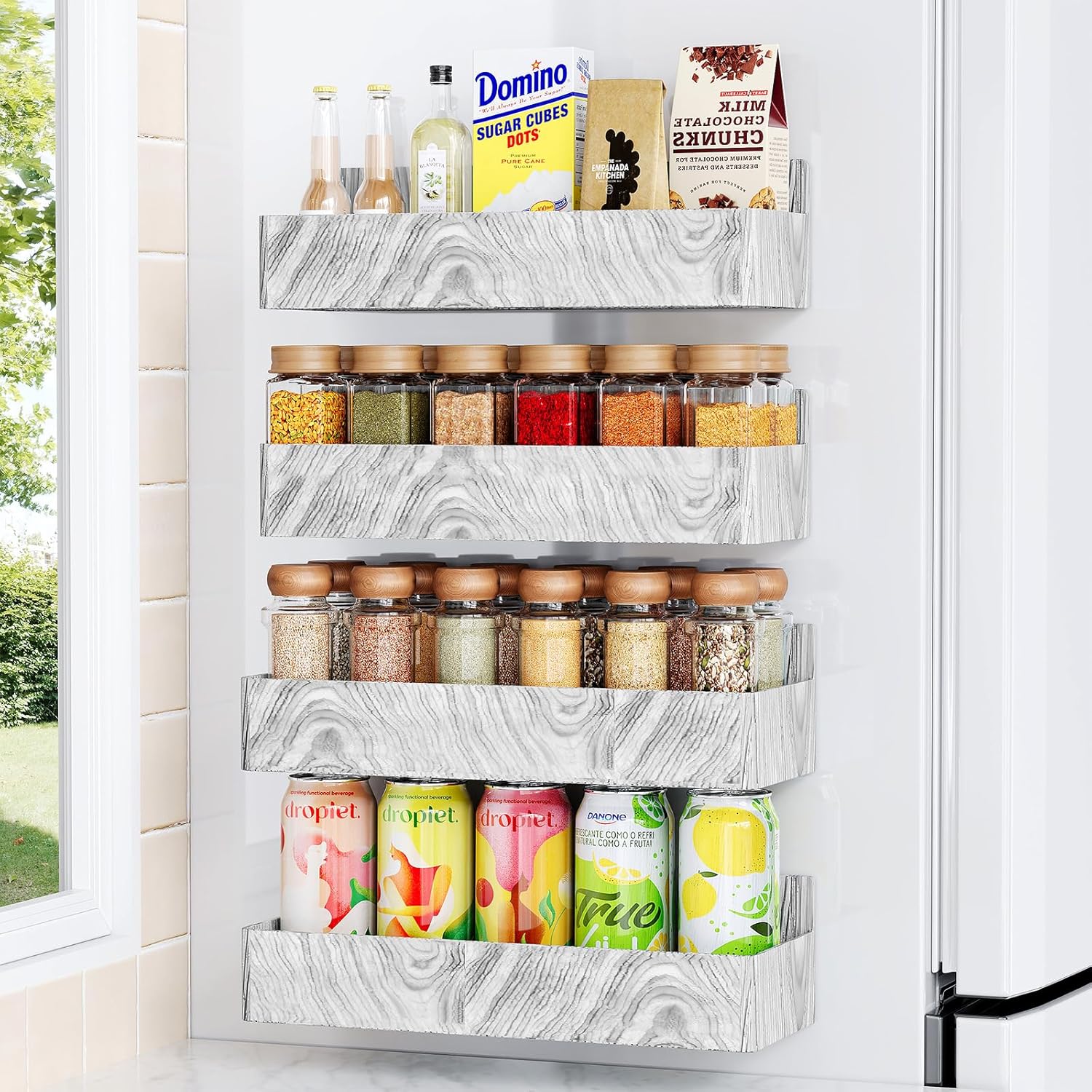 Magnetic Spice Rack for Refrigerator, Kitchen Organizer and Storage Shelf, Wood White(4 Pack)