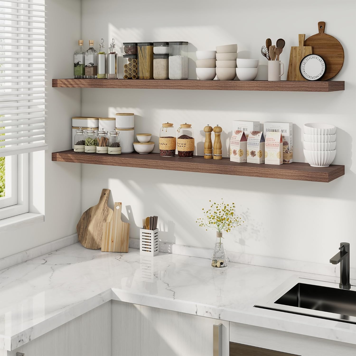 - Timeless Design for Any Room: Elevate your décor effortlessly! The classic retro texture of these floating shelves complements bathroom, bedroom, kitchen, living room or even office space. Neutral tones blend with existing furniture, adding warmth without clashing
