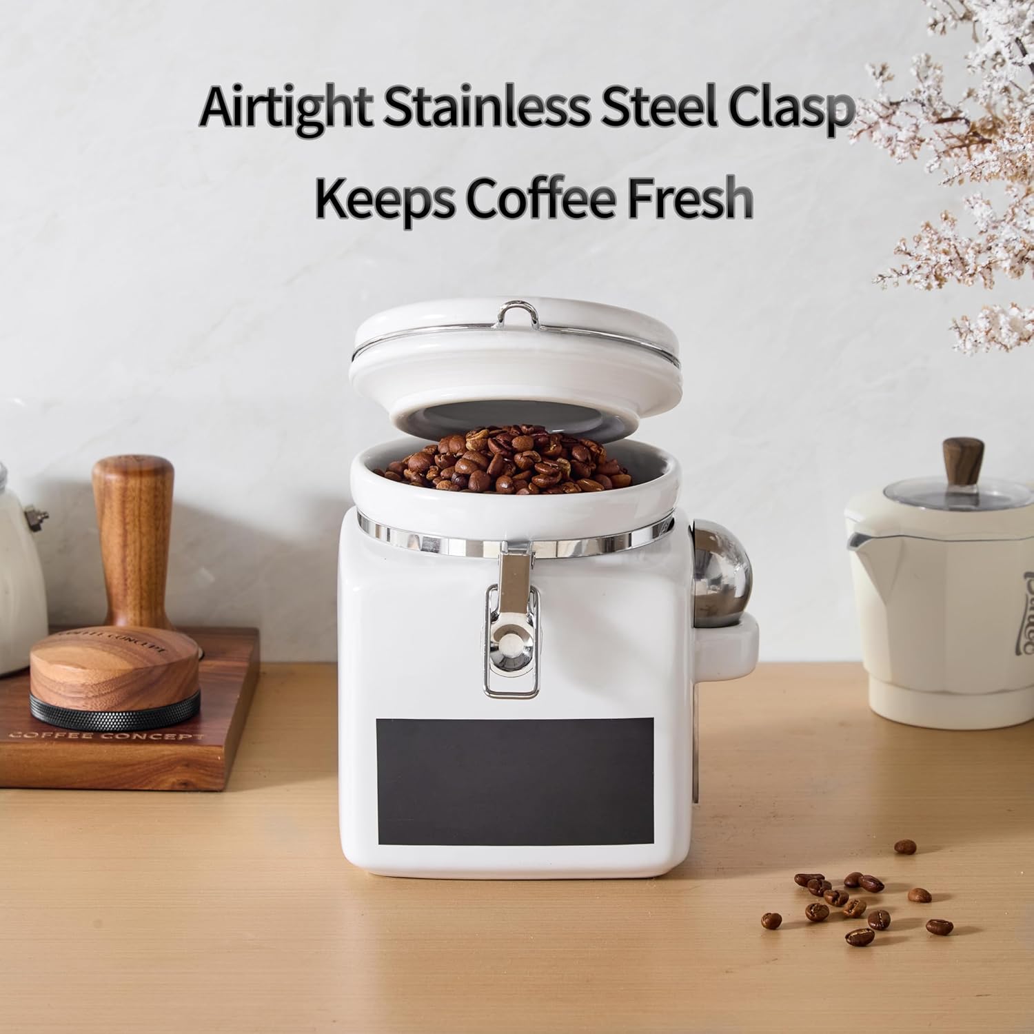 - High-Quality Ceramic with Elegant White Finish: Crafted from thick, lead-free ceramic, this durable coffee canister resists stains, and moisture. Its sleek white glaze adds a clean, modern touch to any kitchen decor—perfect for farmhouse, minimalist, or contemporary styles. Built to last and beautiful enough to display on your counter.