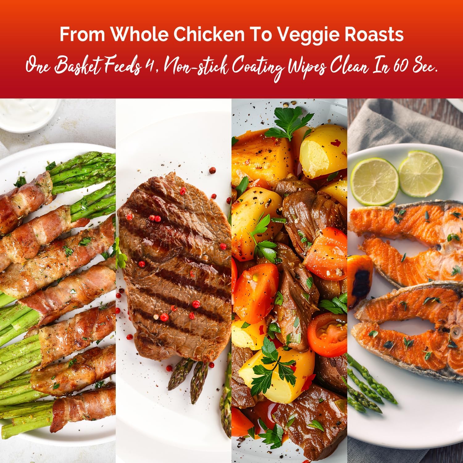 - 【See The Crisp】Air Fryer With Large Viewing Window: Watch your food transform! The large window lets you monitor cooking progress without opening the basket. Plus, the square basket design fits more food than round ones – perfect for chicken wings, fries, and frozen snacks without overcrowding.