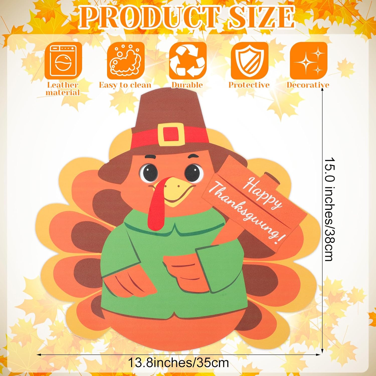 - Cartoon Turkey Design: our Thanksgiving turkey leather place mats are printed with classic turkey elements, the unique turkey pattern is cute and vivid, which can easily decorate your dining table or create a stunning centerpiece for your fall table, add fun and festive atmosphere