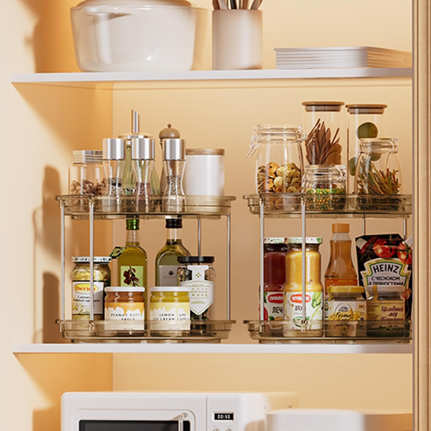 LAMU 2 Pack 2 Tier Lazy Susan Turntable Organizer 10.6'' Rotating Spice Rack Organization for Cabinet, Kitchen, Pantry, Countertop, Bathroom, Vanity, Medicine Cabinet Organizer, Amber