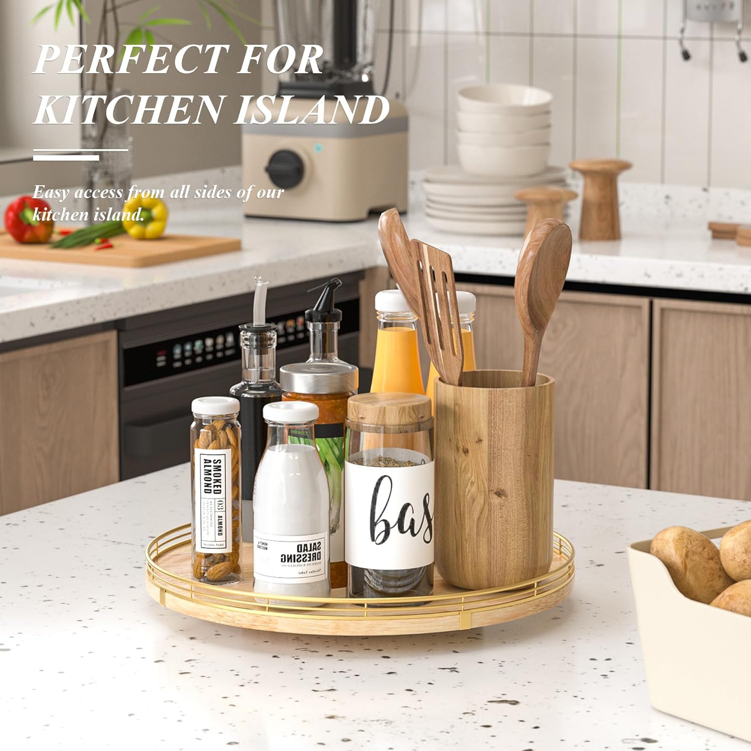 - Sturdy Solid Oak & Iron Design – Crafted from premium natural oak wood with a durable wrought iron frame, this 16 inch Lazy Susan offers both strength and rustic elegance for everyday use and special occasions.
