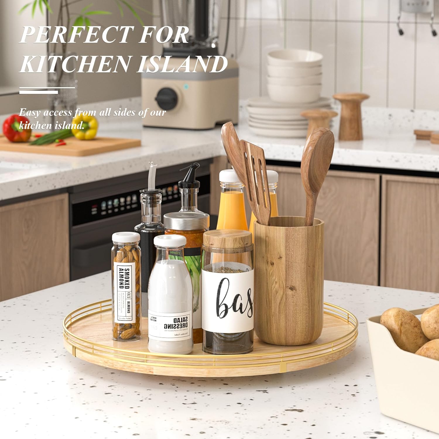 - Sturdy Solid Oak & Iron Design – Crafted from premium natural oak wood with a durable wrought iron frame, this 16 inch Lazy Susan offers both strength and rustic elegance for everyday use and special occasions.