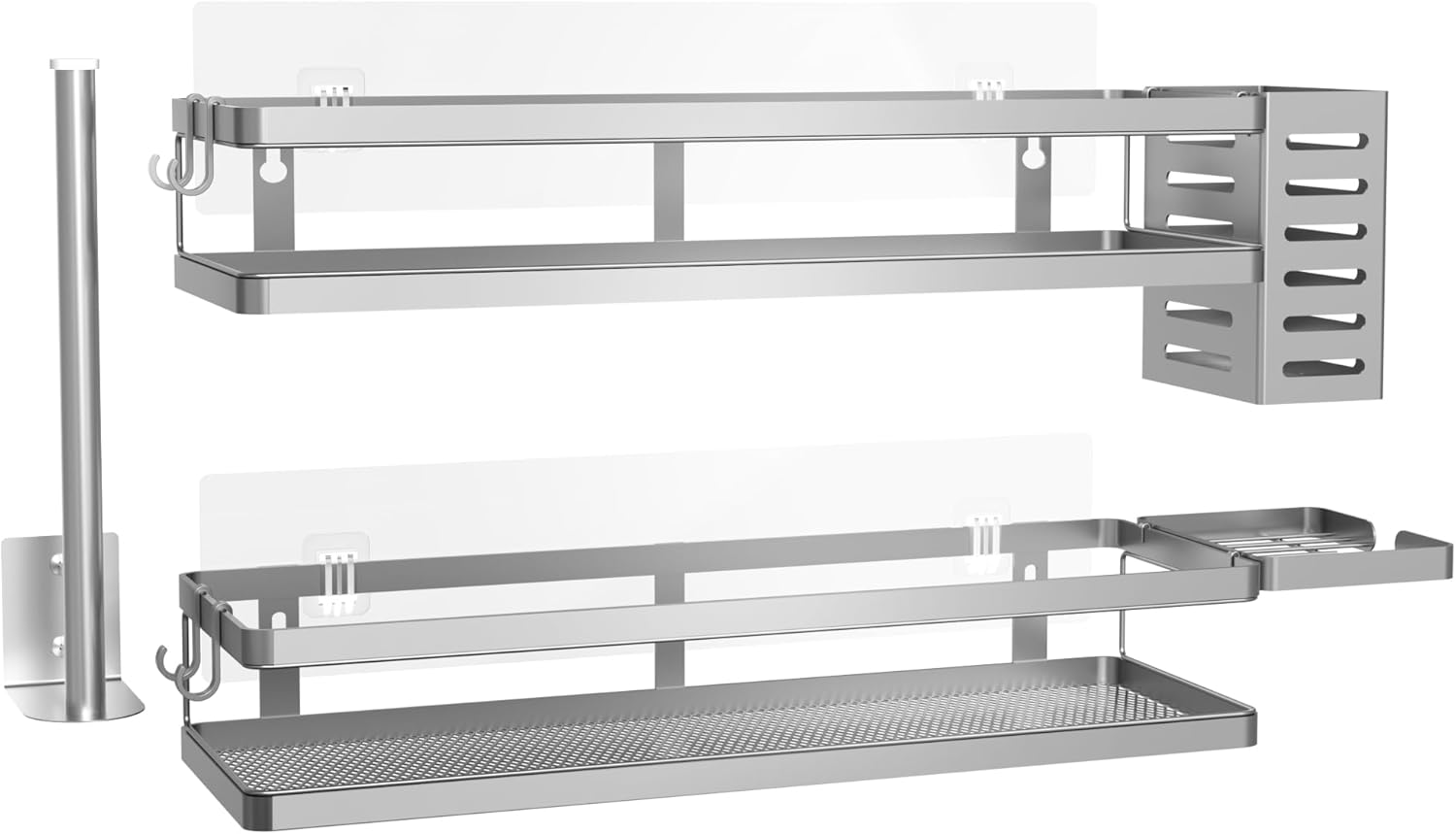 PUSDON Metal Wall Hanging Basket 2 Packs DIY Suitable for Multiple Scenes - Large Silver Grey Guardrail Suit