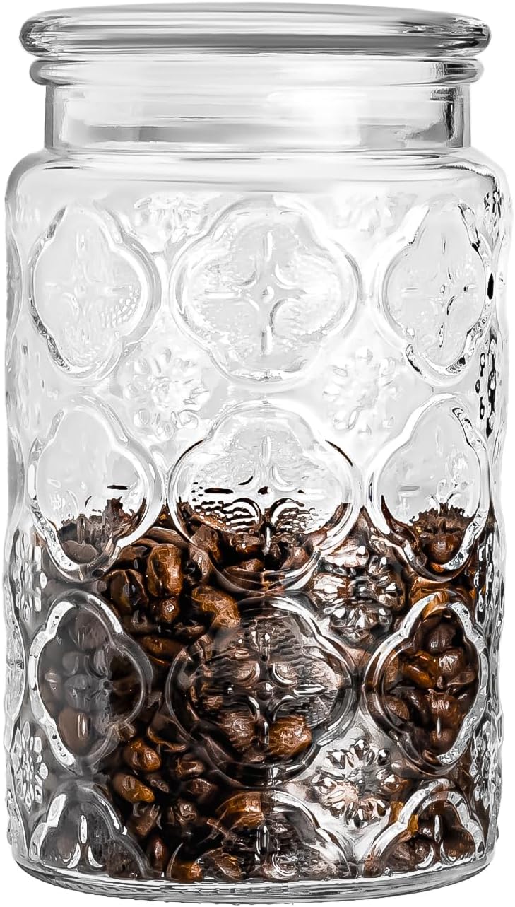 32oz Vintage Glass Jar With Lid, Glass Storage Containers, Airtight Kitchen Storage Containers For Sugar, Coffee, Tea, Spice, Flour, Candy Cookie, Pasta, Cereal, Cute Decorative Jars
