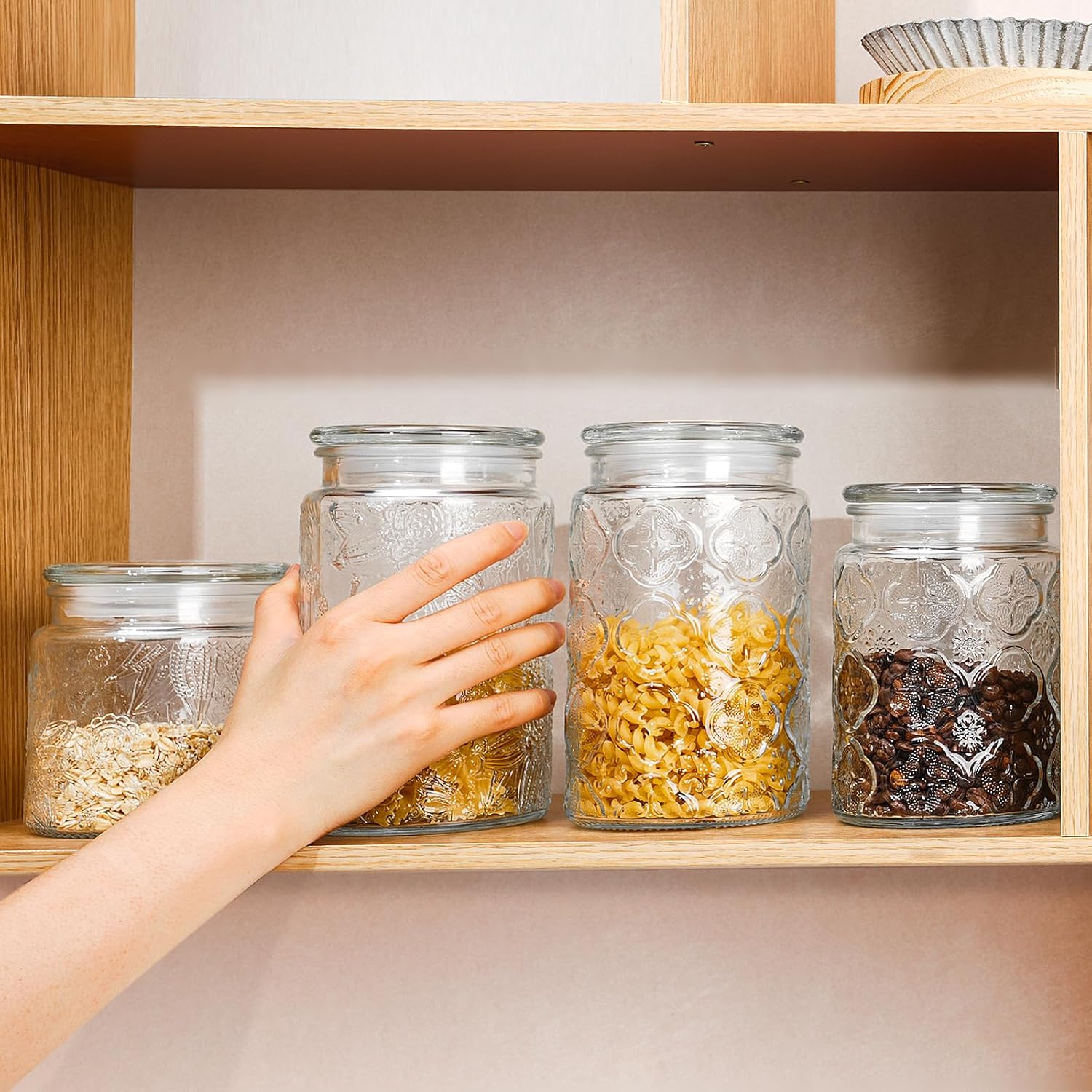 - Stackable Design: This stackable glass jar is designed for organizing your pantry or kitchen. Its unique recessed top design allows you to easily stack multiple jars on top of each other to save space and keep ingredients fresh.