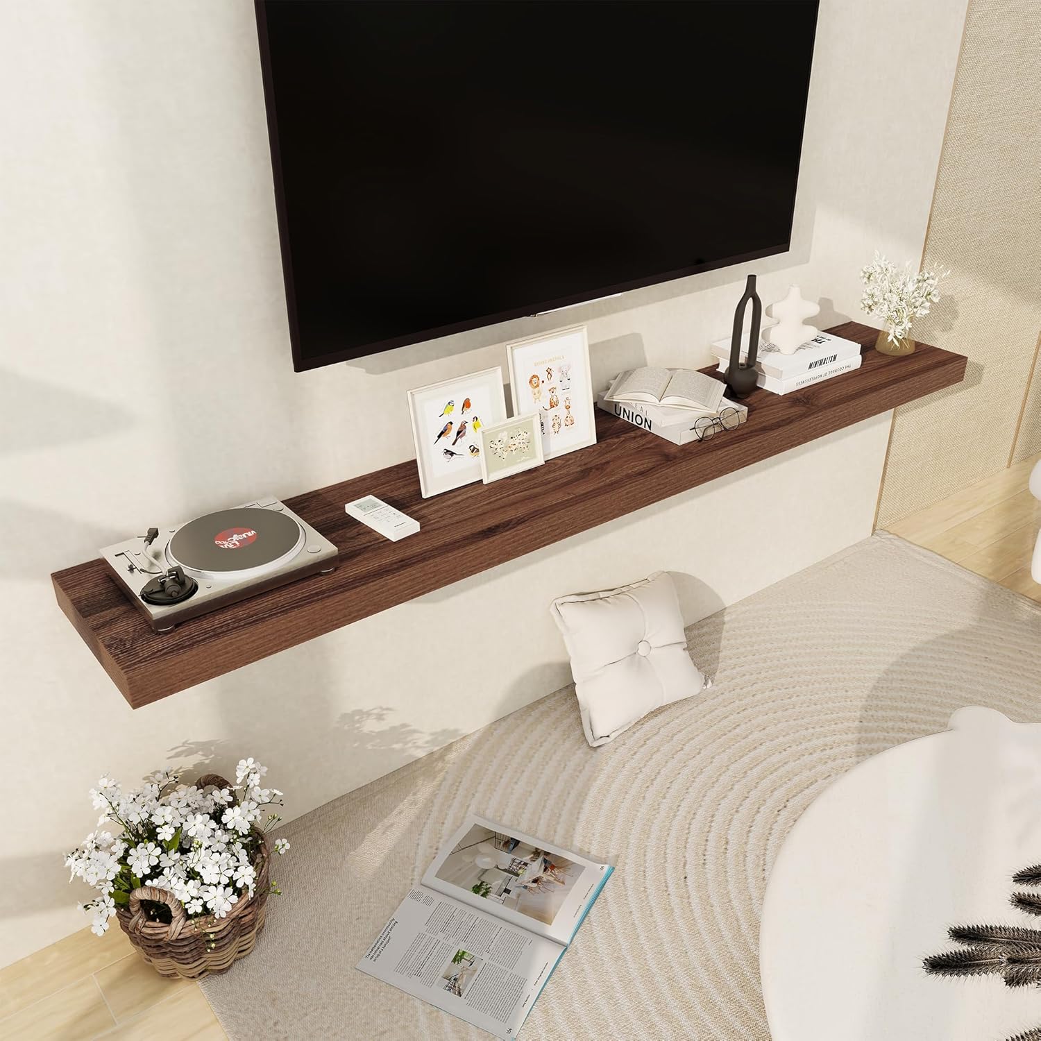Fun Memories 72 Inch Floating Shelf, 12 Inch Deep Wall Shelf for Fireplace Mantel, Deep Storage Shelves for Home & Office, Wall Shelves with Invisible Bracket, Walnut, Set of 1
