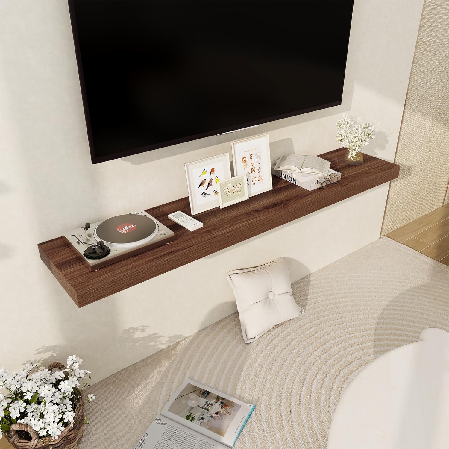Floating Shelves 55 Inch Long, 12 Inch Deep Floating Shelves for Wall, Rustic Deep Wall Shelf for Fireplace Mantel, 55 x 12 Large Display Shelf for Living Room, Bedroom, Kitchen, Walnut Color, 1 Pack