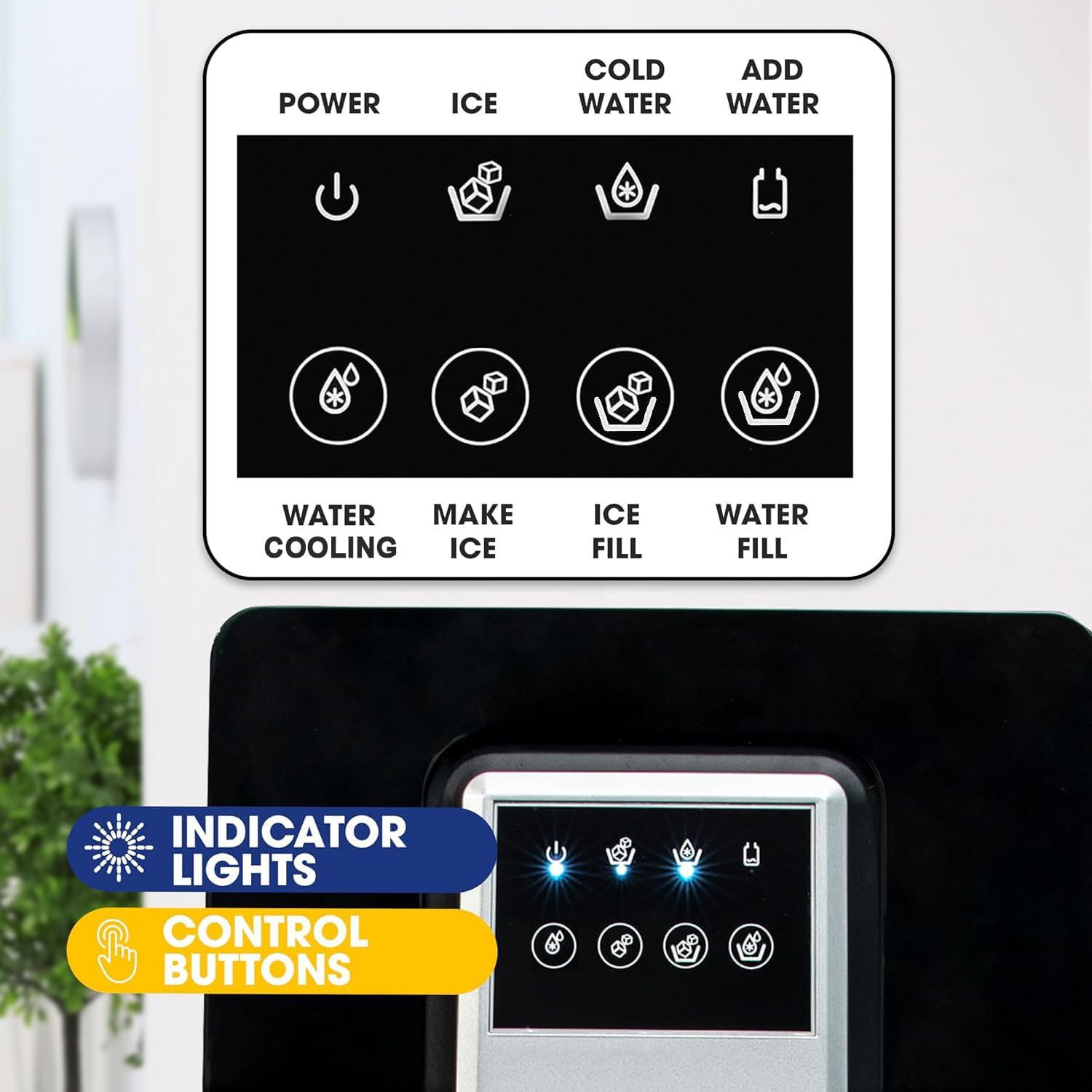 - TOUCH SCREEN CONTROLS: Touch screen control panel is straightforward, easy to understand, and easy to use. Indicator lights tell you when ice is being made, water is cooling, and when both are ready to dispense.