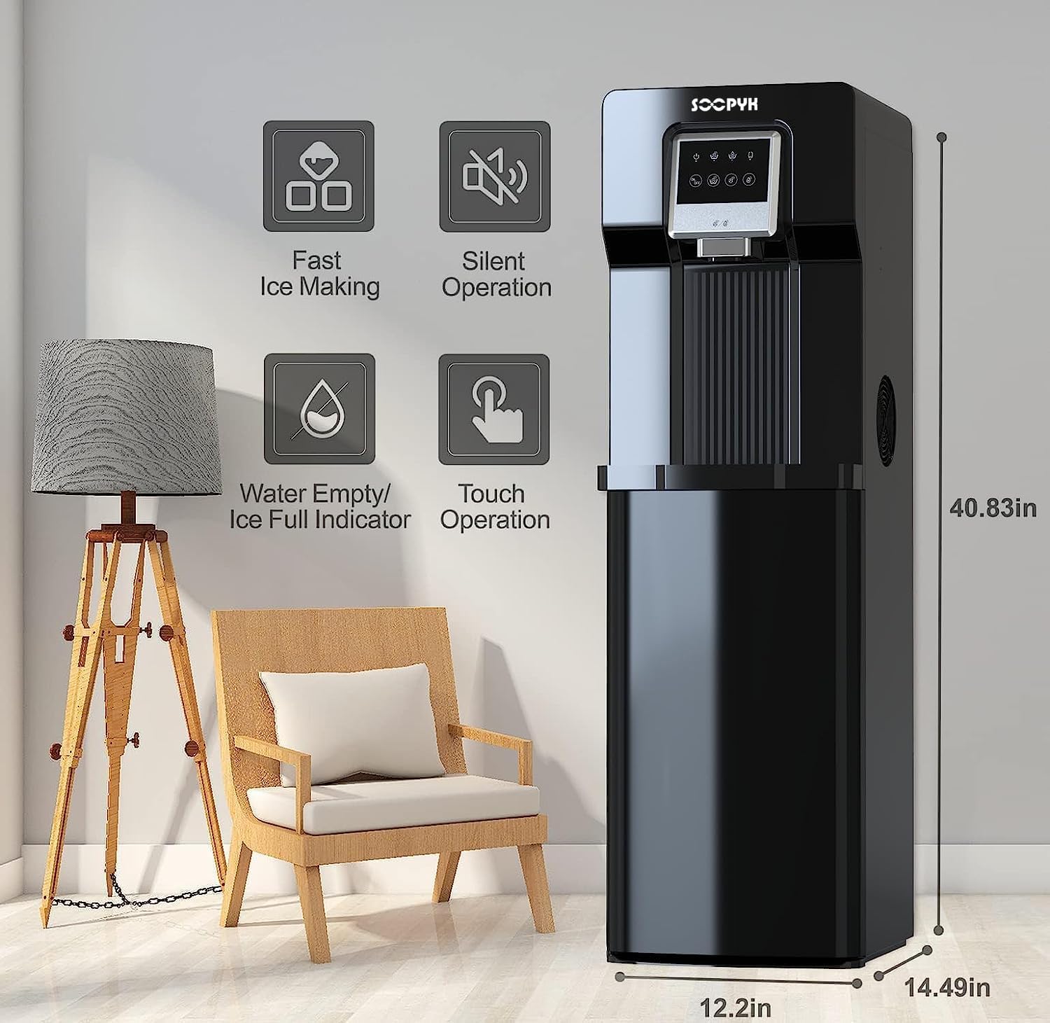 2 in 1 Bottom Load Water Cooler Dispenser with Ice Maker for 3 Gallon Bottle 17lbs Daily Capacity (NO HOT Water) Black