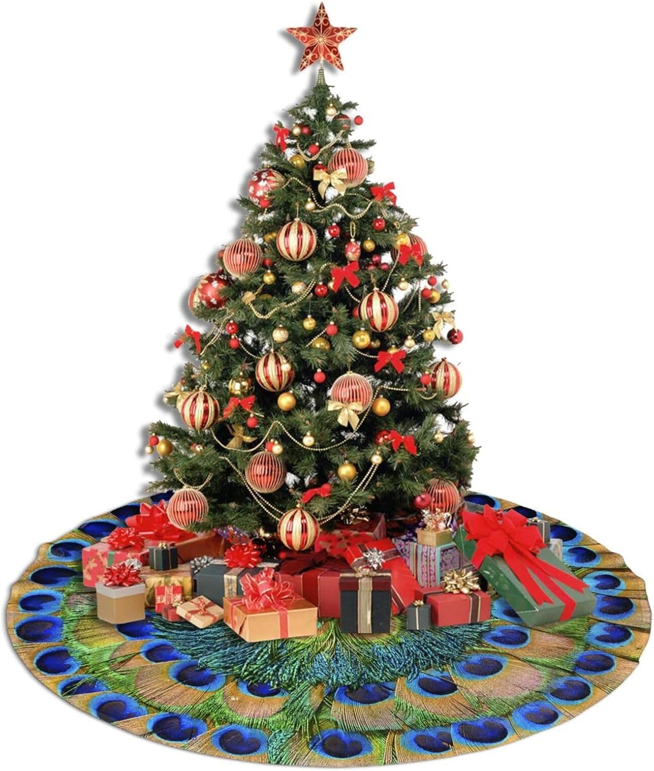 - Blending Classic with Innovation: Our Christmas tree skirt features a distinctive Peacock Feathers Circle pattern, merging traditional charm with a touch of modern elegance. This skirt promises to be a standout piece in your Christmas decor, setting a warm and romantic festive ambiance for your home. Don't miss out on this exquisite addition to your holiday season!